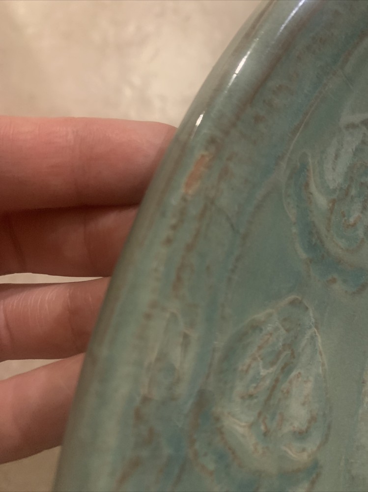 Pottery Barn Stoneware Footed Serving Bowl Platter Large 16” dia. x 9” H. Shipped with USPS Priority Mail. Tiny spot on the edge is missing the glaze as shown on the pictures There will be extra charge for Alaska and Hawaii and Puerto Rico