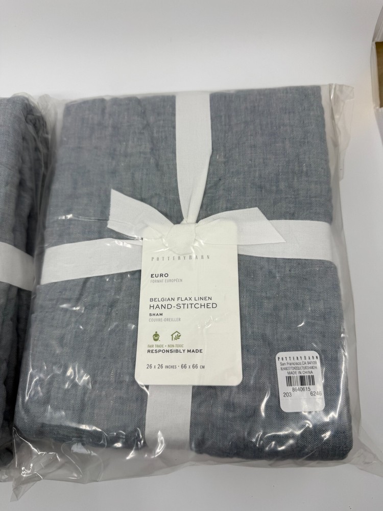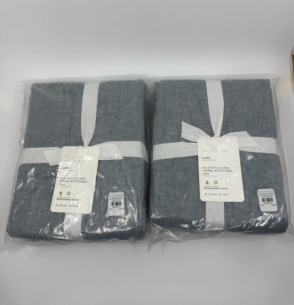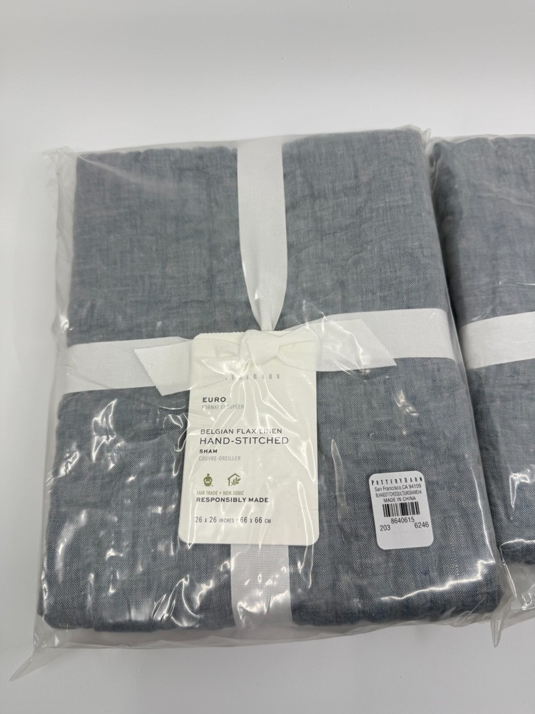 The Pottery Barn Chambray Belgian Flax Linen Hand-Stitched Quilted Euro Sham 2 Pack is a stylish and contemporary addition to any bedroom. Made from 100% linen with a 100% cotton fill, these square pillow shams offer a touch of luxury and comfort. The solid blue color and quilted design add a touch of elegance to your bedding, while the machine washable and tumble dry care instructions make them easy to keep clean and fresh. With the Pottery Barn brand known for quality and style, these Euro shams are sure to enhance your bedroom decor.