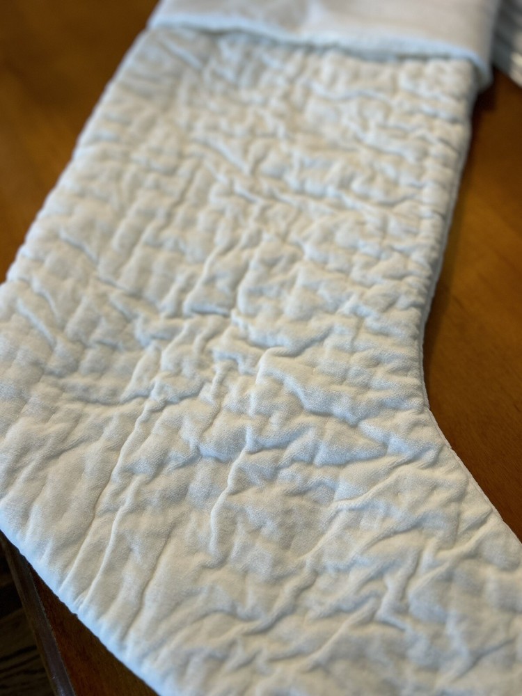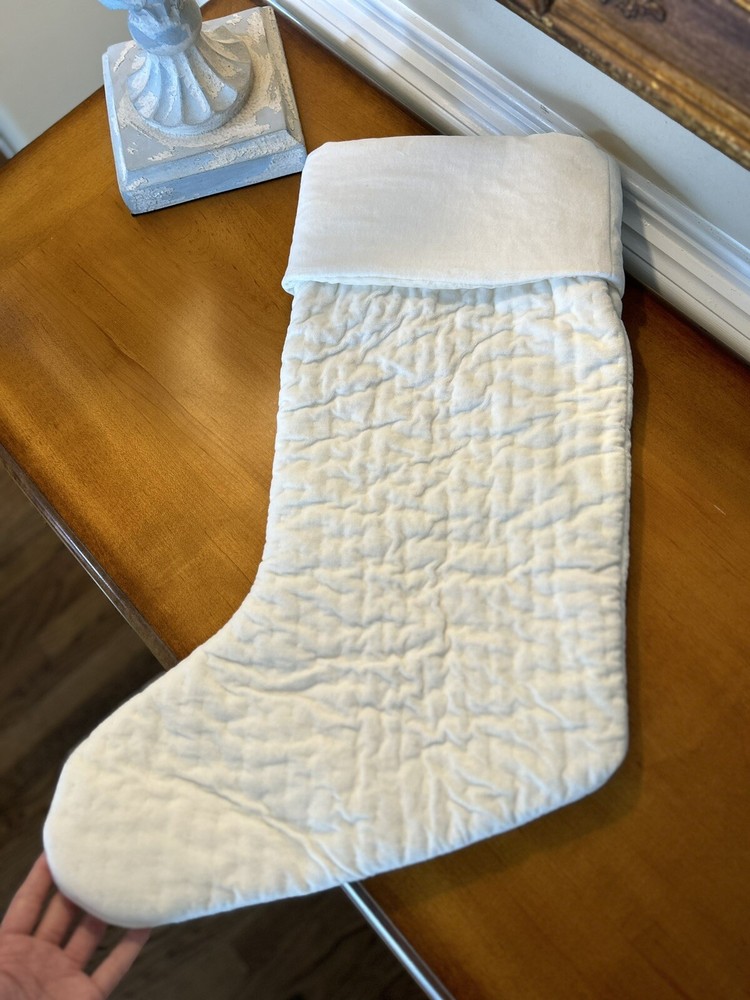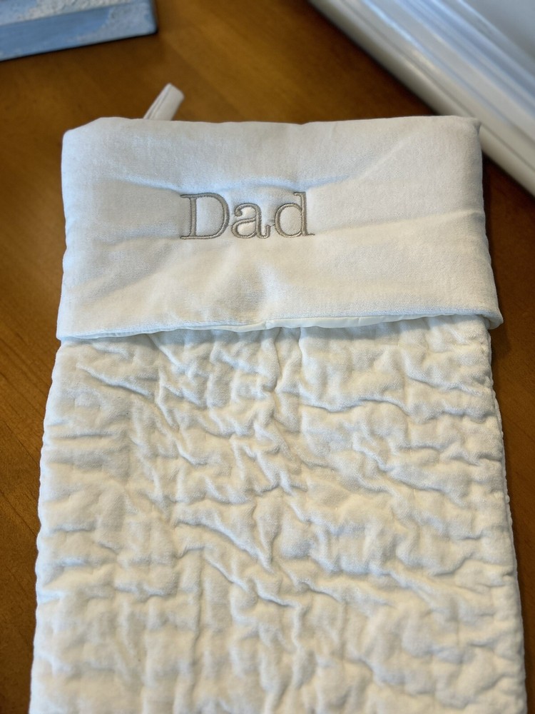 Pottery Barn Channel Velvet Quilted Christmas Stocking Large Ivory Mono “Dad” NWOT - The monogram is slightly off center, please reference photos!...