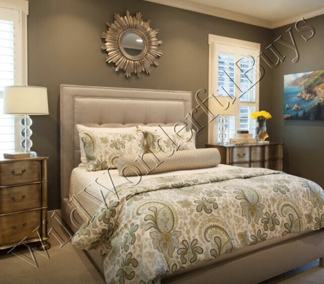POTTERY BARN CHARLIE DUVET SET Fanciful paisleys drawn from an antique French wallpaper print swirl across our ivory bedding, woven from pure organic cotton for a silky smooth hand. Made of organic cotton. 200-thread count. Duvet cover reverse to self. Duvet cover has a button closure. Machine wash. Imported. Auct ion is for KING Duvet cover with THREE EURO SHAMS. Color available is COOL BLUE GREEN. Item is USED in GREAT CONDITION! No longer in original packaging. (Condition ranges I use: NEW, EXCELLENT, GREAT, GOOD, POOR) A d d i T i O N a l P h o T O s A v a i L a B Le U p O n R e Q u e S T PURCHASED DIRECTLY FROM POTTERY BARN. AUTHENTIC.