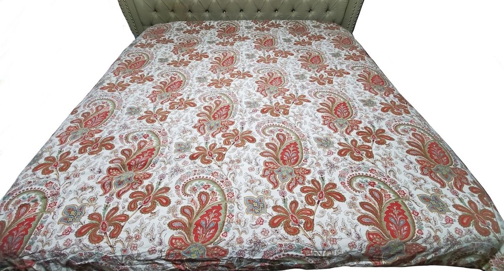 Pottery Barn Charlie Paisley Organic Cotton KING Duvet Cover Red/Green/Cream. Overall in good condition, where the opening starts to put the duvet inside small tear less then ½" (could be sewin closed). Other then that no issues, No stains