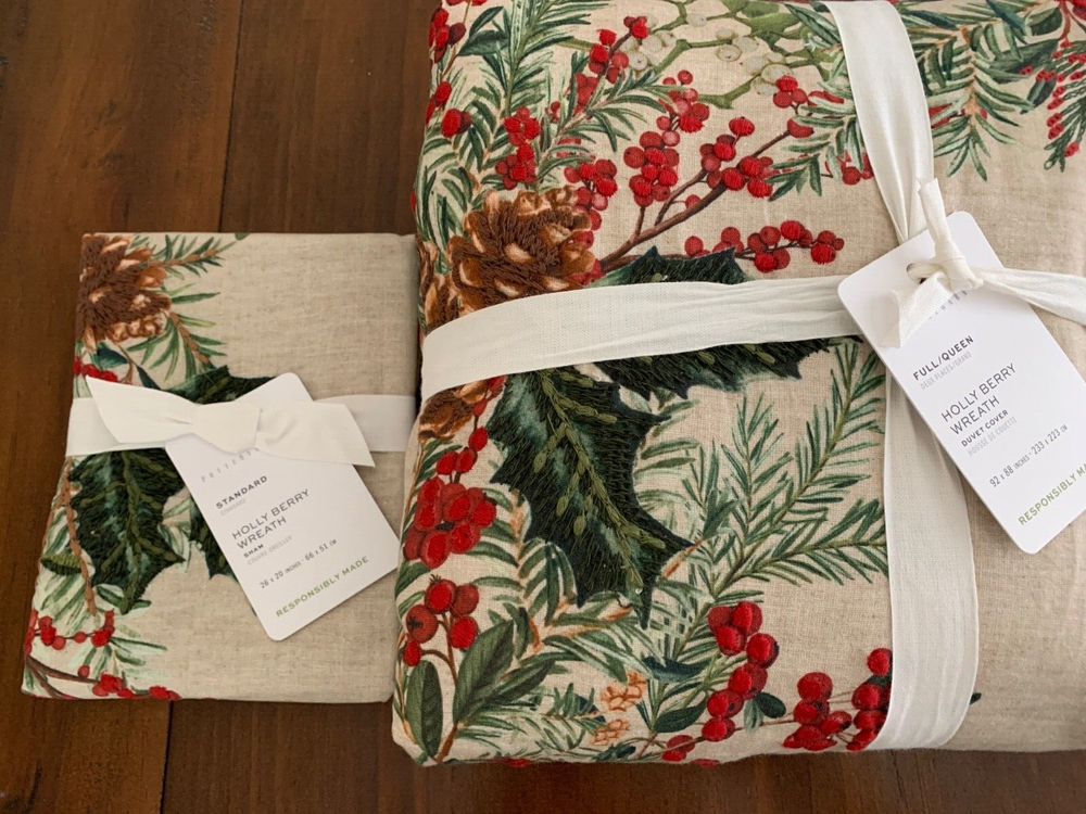 Full/Queen Duvet: 88" l x 92" w Standard Shams: 20" w x 26" l Material: Made from 85% cotton and 15% linen. Reverses to 100% cotton. Secure Design: Duvet features a hidden button closure with inner ties that keep insert in place; sham features an envelope closure. Machine wash in warm water; gentle cycle. Use only non-chlorine bleach, if needed. Tumble dry on low; remove promptly. Warm iron as needed. Certification and Standards: By choosing our cotton products, you’re supporting our investment in Better Cotton’s mission. This product is sourced via mass balance and therefore may not contain Better Cotton. Place of Manufacture: Imported.