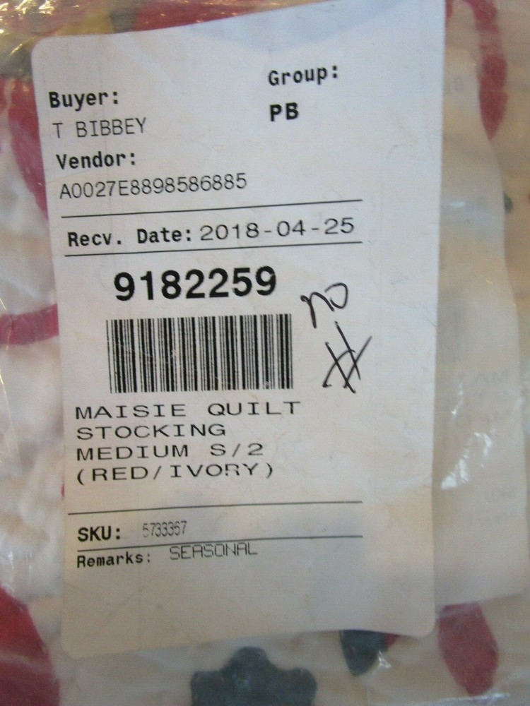 Up For Auction is- Pottery Barn Christmas Maisie quilted stocking photo shoot sample used only for a Pottery Barn photo photo shoot sample in excellent condition Smoke and pet free home.