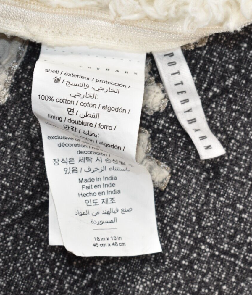 Pottery Barn Halloween Trick or Treat Yourself Embroidered Gray 18x18" Pillow Cover Condition: Good, clean, gently used condition. No rips, stains or holes. The care tag say to Spot Clean Only, HOWEVER we turned the cover inside out and laundered on gentle cycle in a laundry bag. After laundering we tumbled dry on low heat for a few minutes then finished with air drying. Please see all photos and entire Item Description section for any additional information. Dimensions: Approx. 18"x18" Colors: Gray, Off-White Made from 100% Cotton Size: Approximately 18 x 18 inches Reverses to faux sherpa. Zip closure Requires an 18x18 inch pillow insert (not included) Buyer pays $6.90 shipping. Thanks so much!