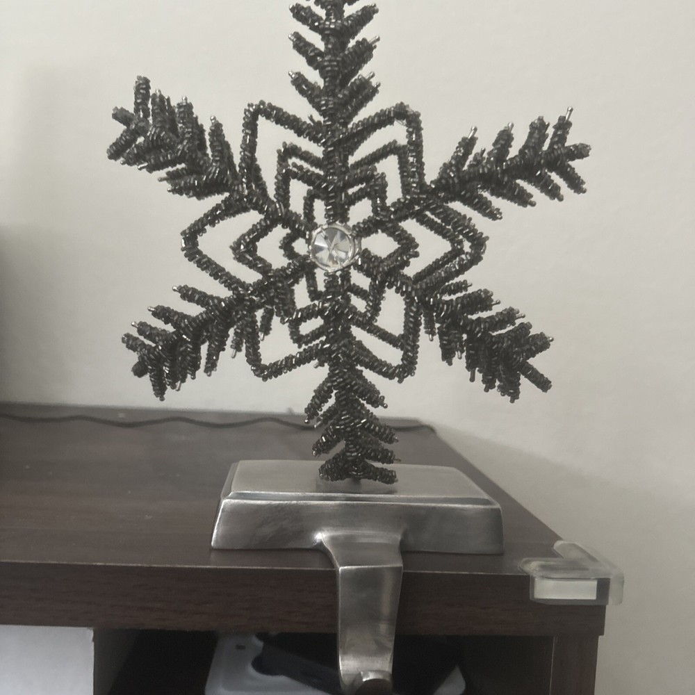Pottery Barn Christmas Silver Beaded Star Stocking Holder