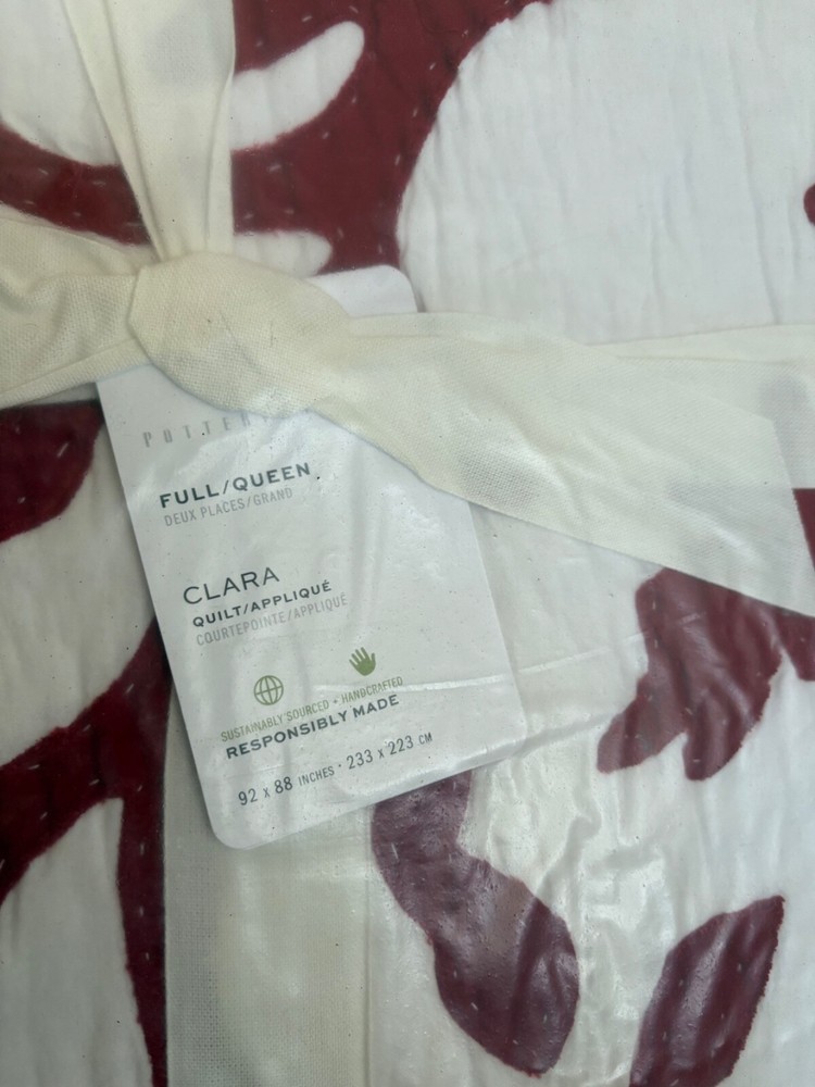 Crafted for comfort and aesthetic appeal, the Pottery Barn Clara Applique Full/Queen Christmas Quilt brings a touch of farmhouse charm to any bedroom. Adorned with a delightful cardinal and tree pattern in vibrant white and red, this quilt is a festive addition to your holiday decor. The 100% cotton material ensures a soft, breathable feel, ideal for all-season use. Measuring 88 inches x 92 inches, this rectangular quilt fits full and queen-sized beds perfectly. Its quilted design not only adds texture but also provides an extra layer of warmth. Whether you're looking to spruce up your space for the holiday season or simply want to add a quaint, seasonal touch to your bedroom, this quilt is a timeless choice. Payment is due within 3 days of sale, thank you!