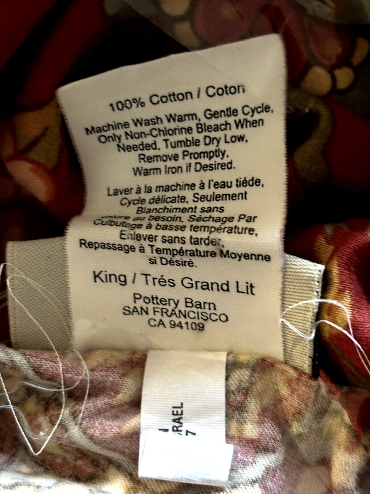 Pottery Barn Clara Floral Peacock Birds King Duvet Cover Please check your measurements for proper fit Approx. 100"x 88"/ Button closure No visible issues/ Overall nice pre-owned condition Has been freshly washed/ May require iron or light steam Color may slightly vary due to camera lighting Smoke and Pet Free Home