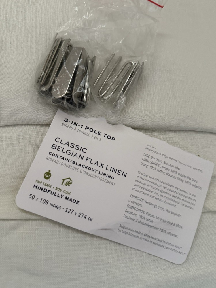 The Pottery Barn Classic Belgian Flax Linen Drape in Ivory is a stylish and classic addition to any room. Made of high-quality linen with a rod pocket heading, this curtain measures 50x108" and offers a blackout transparency for privacy. The solid ivory color and classic style make it versatile for any room, while the wall-mounted pole top design adds elegance to your decor. Perfect for adults looking to enhance their living space with timeless and sophisticated window treatments. This is an open package but the item is new.