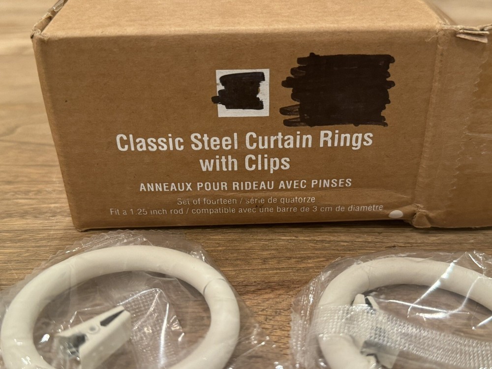 Pottery Barn Classic Steel Curtain Rings Set of 14 in White Large 2.5” Diameter. Inside diameter is about 1.75”