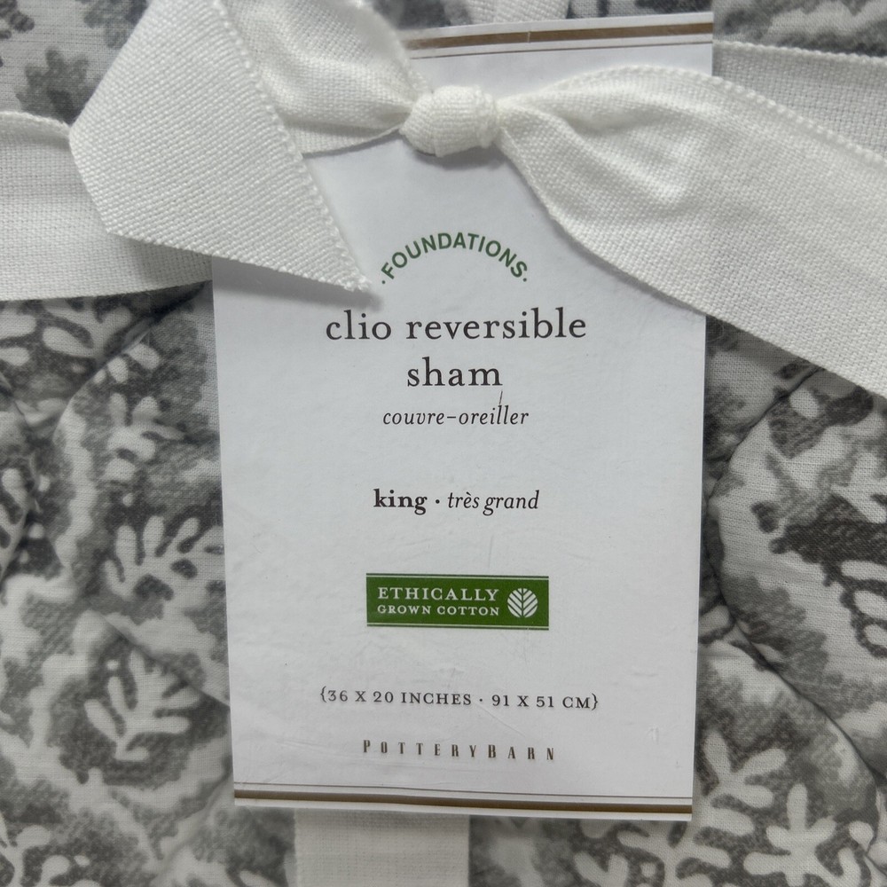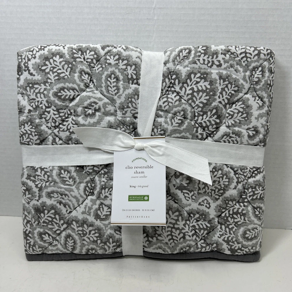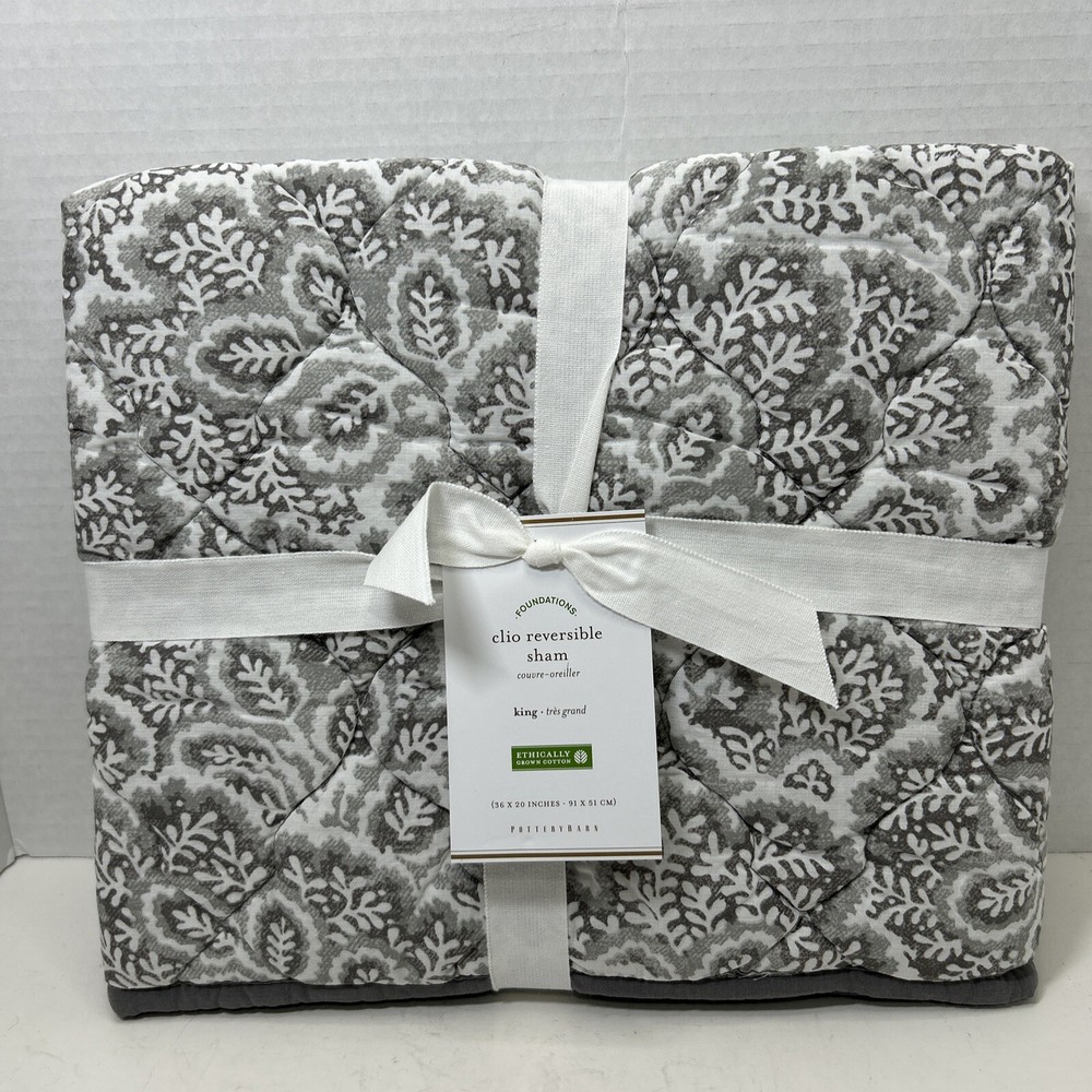 Pottery Barn Foundations Clio reverse able Smoky Grey king pillow sham. 36 inches by 20 inches. Shell material is 100% Cotton, inner filler is polyester Made in China New in open package