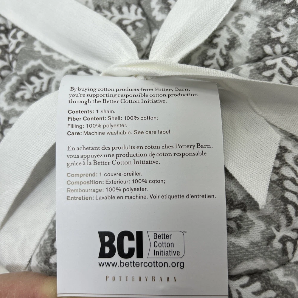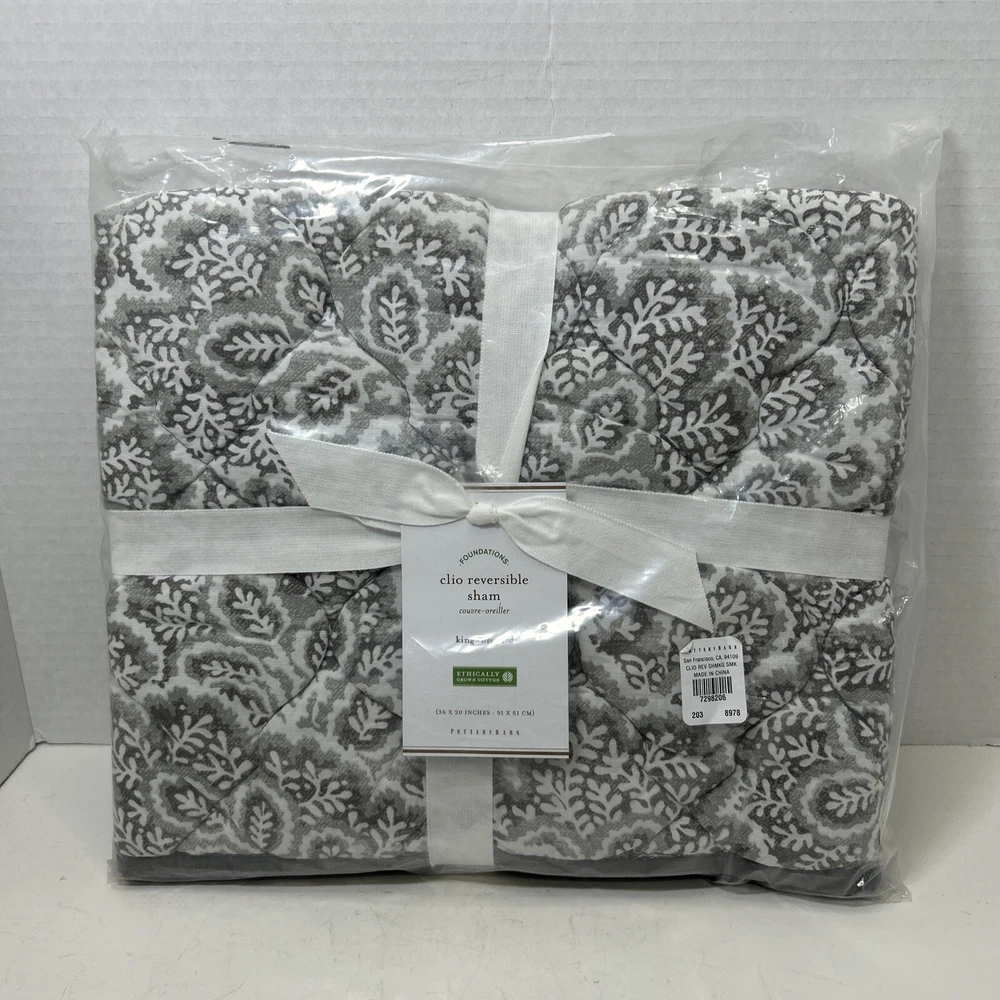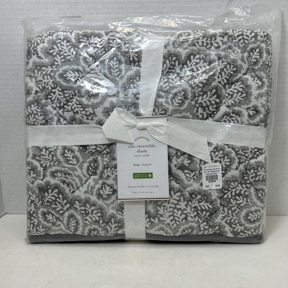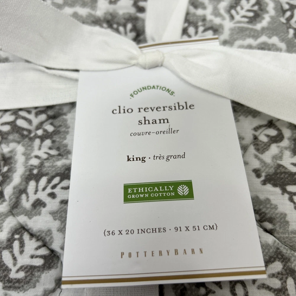 Pottery Barn Foundations Clio reverse able Smoky Grey king pillow sham. 36 inches by 20 inches. Shell material is 100% Cotton, inner filler is polyester Made in China New in open package