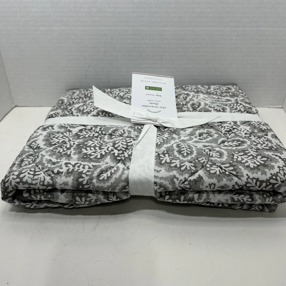 Pottery Barn Foundations Clio reverse able Smoky Grey king pillow sham. 36 inches by 20 inches. Shell material is 100% Cotton, inner filler is polyester Made in China New in open package...