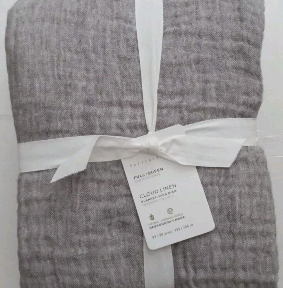 Pottery Barn Cloud Cotton Linen Blanket full/queen, Gray, NWT Retails for $179 Material: Made of 75% cotton and 25% linen. 88” x 92”...