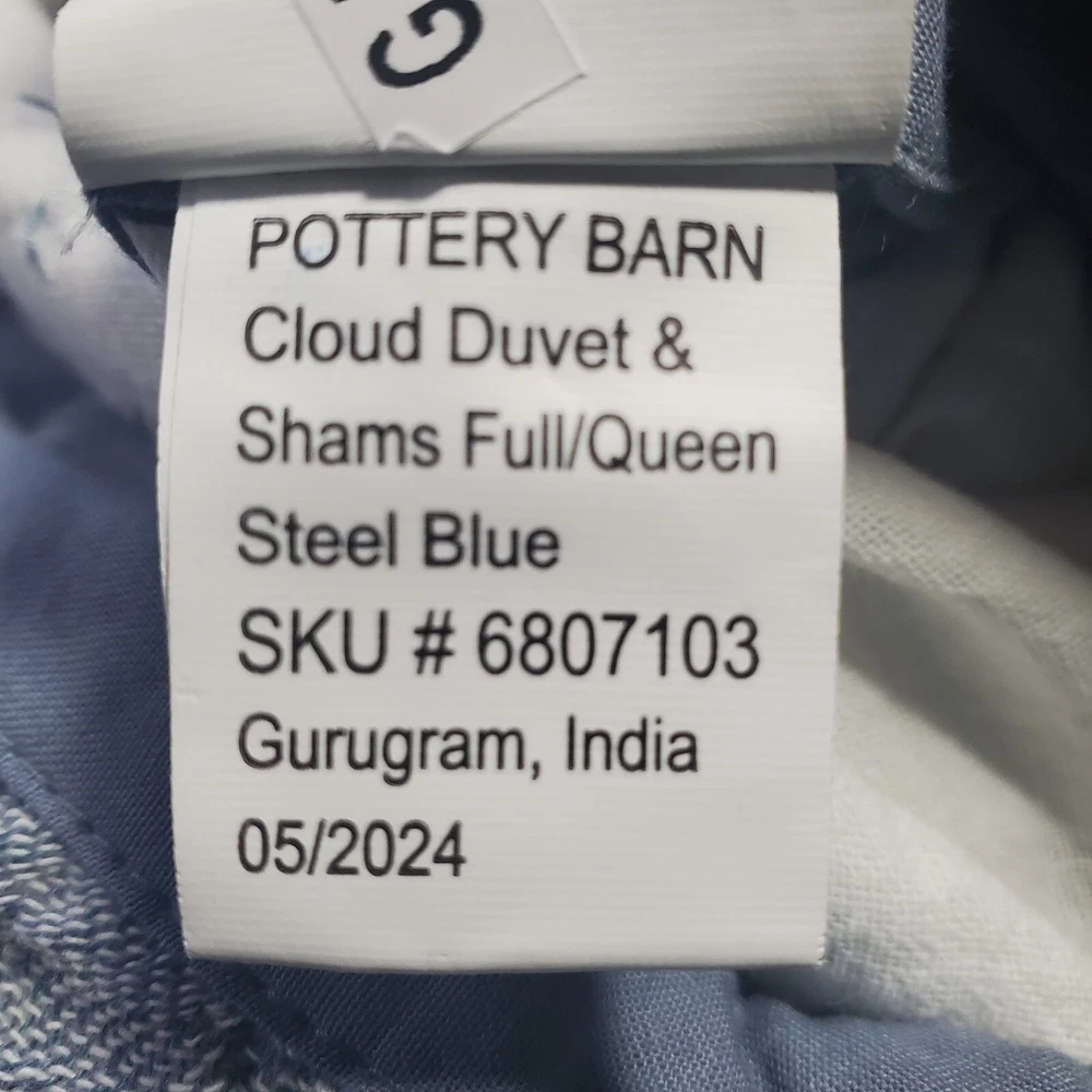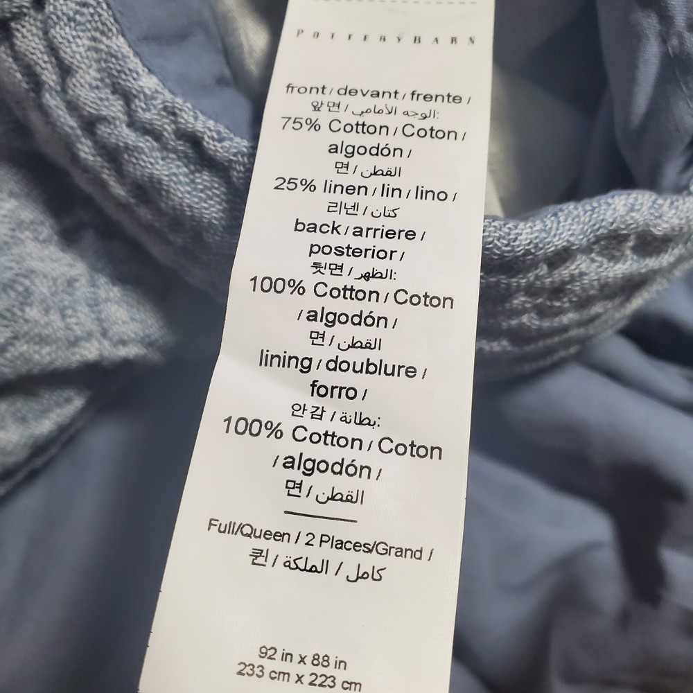 Pottery Barn Cloud Cotton/Linen Duvet Cover King/Cal.King Steel Blue OB New Open box/NWOT. There is a small pull near the bottom edge in the center of the duvet. This duvet is open box andbhas been loose with other linen, it has been very thoroughly lint rolled but a few hairs/fibers could remain. Duvet Cover Will Arrive Re-Packaged. Orders Ship FREE!!!