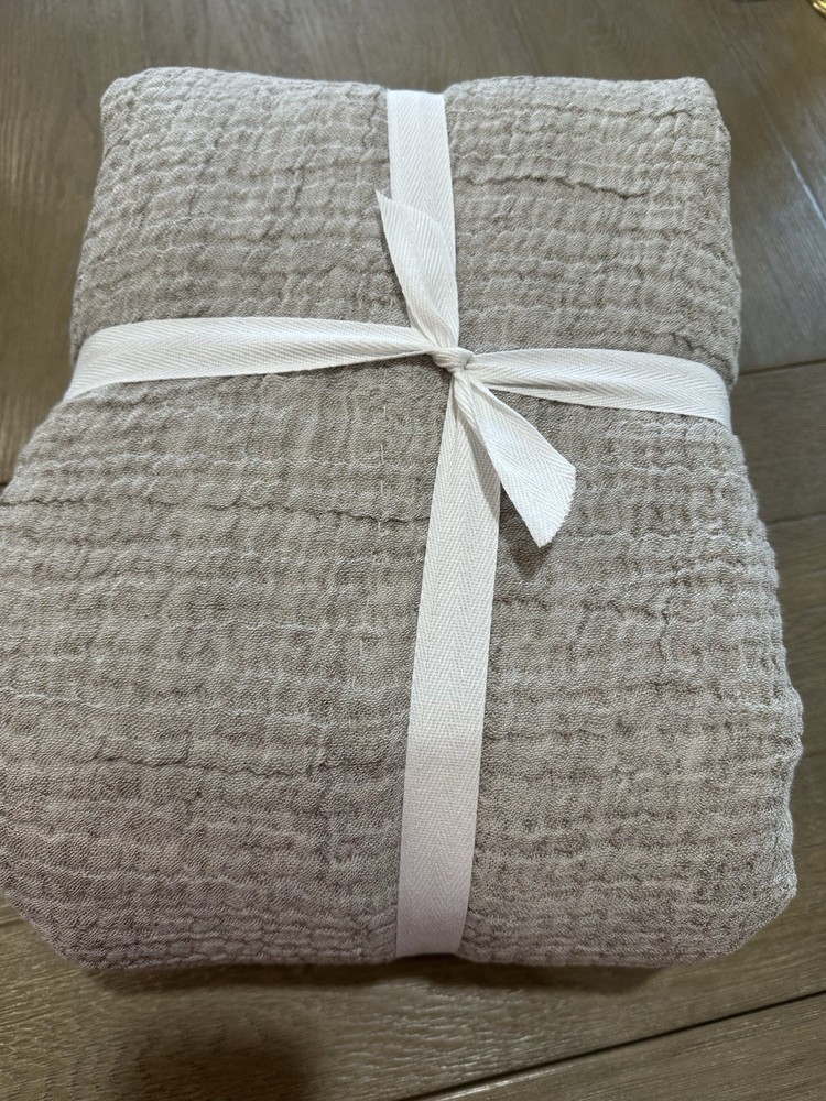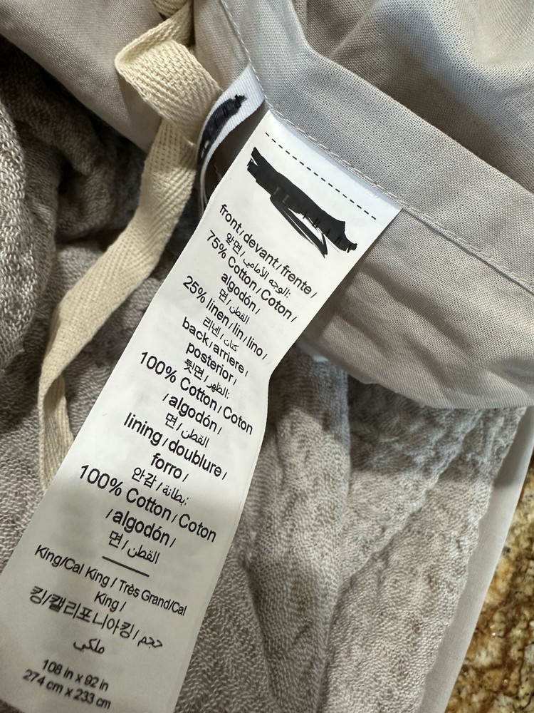 new without paper tags. attached content tag has been marked out as shown in the photo. one king/cal king size Pottery Barn Cloud Duvet cover in Cafe Au Lait 75% cotton 25% linen on the front side 100% cotton on the back side