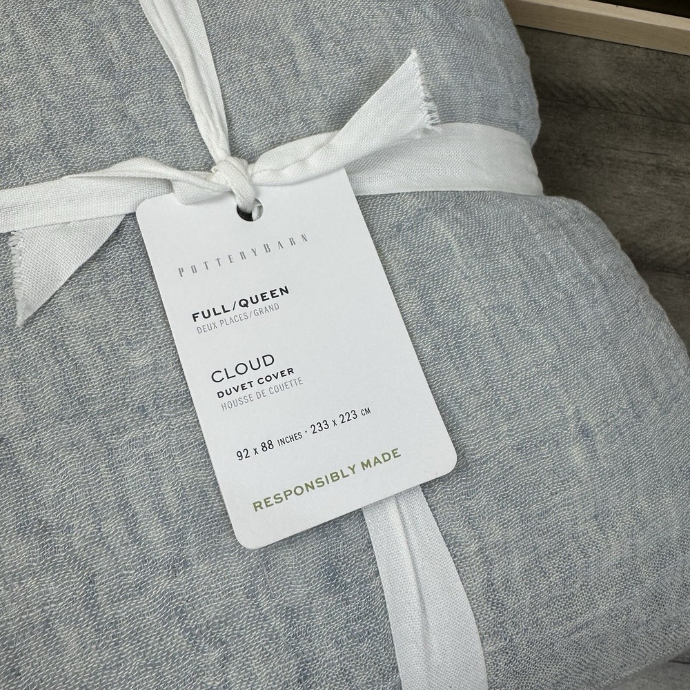 Pottery Barn Cloud Linen Cotton Duvet Cover Full/Queen Chambray Blue NWT New with tags item / open box - item ships without manufacturer packaging This listing is for one duvet only Dimensions: 92”x88...
