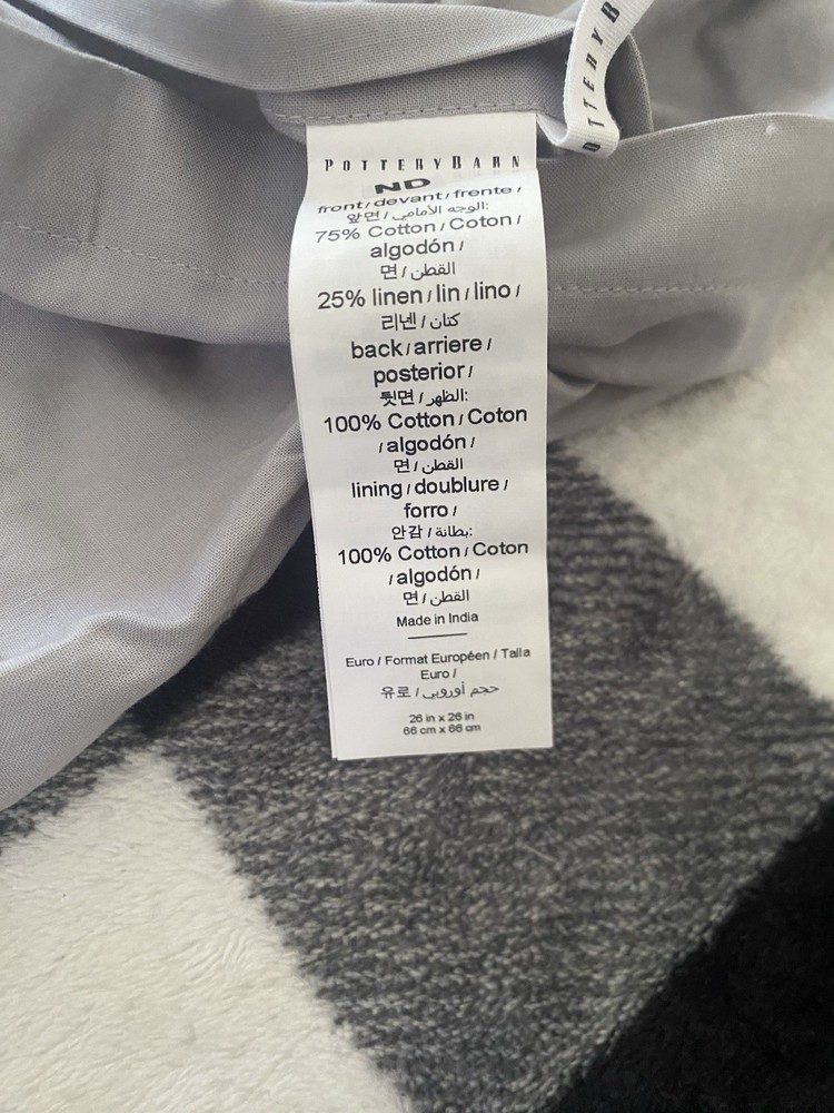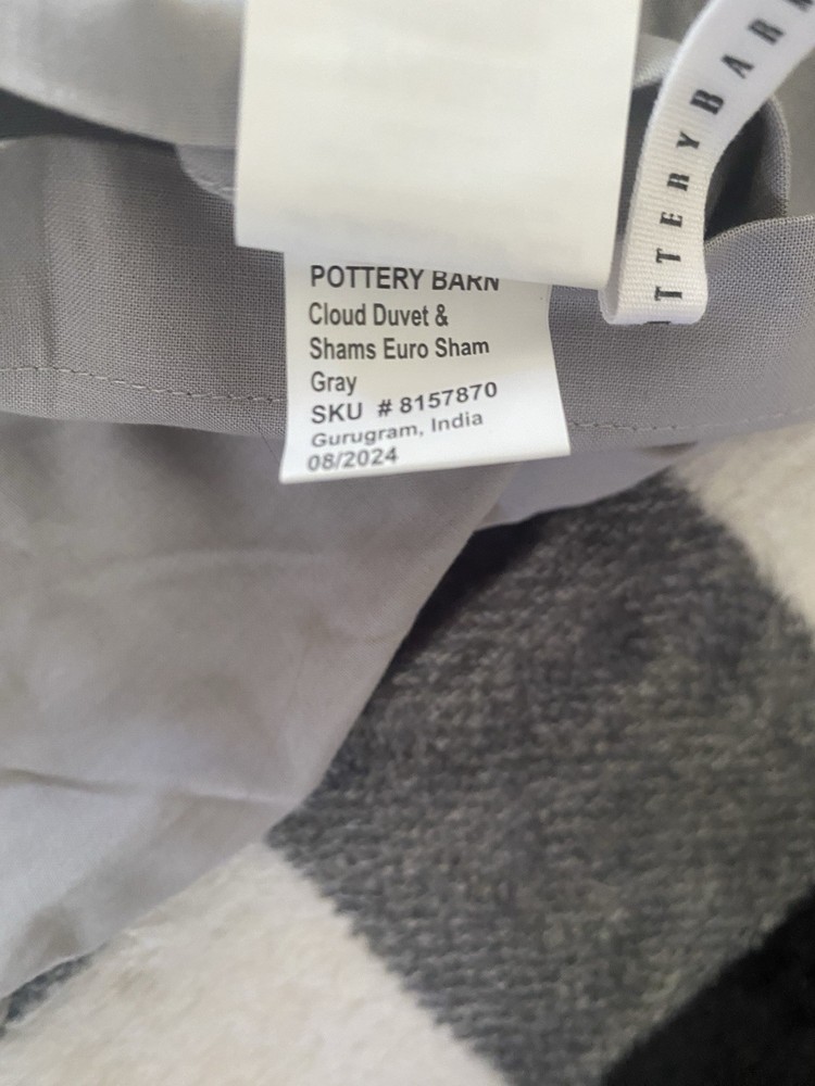 Pottery Barn Cloud Sham, Gray. Euro size with envelope closure, machine washable. This is an open box purchase so there are no original tags or packaging. Stored in a smoke free environment. Thanks fo...
