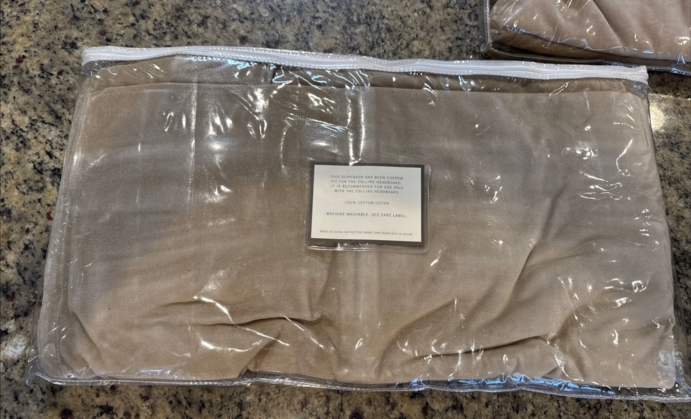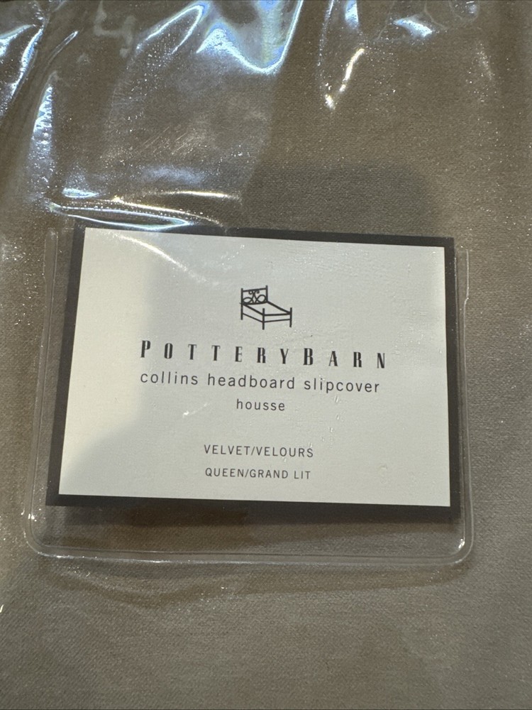 Pottery Barn Collins headboard slipcover QUEEN Sand Velvet Tan Fabric New in package - package may have a little storage wear. See all photos.