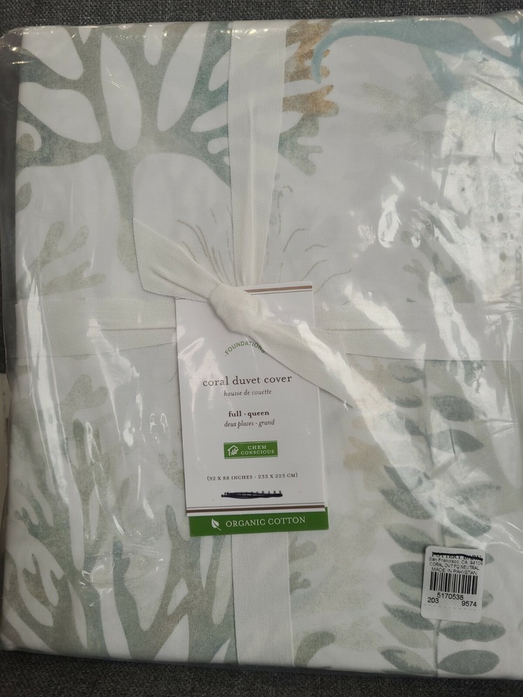 You are purchasing One Pottery Barn Coral Duvet cover Size is Full/Queen on the duvet new with tags. paper tags have a black line through the PB name. A couple of these (will be sent last) have a slight marking on them. "No location" was written on the outside plastic packaging and it leaves a slight yellow mark underneath the plastic. I will include a picture. Minor, but should be noted.