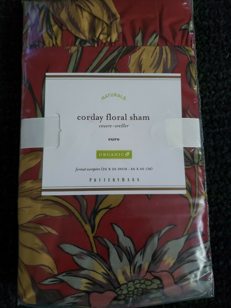 Pottery Barn Corday Floral Sham Euro 26x26 Red Organic 100% cotton msrp $39.50. Condition is "New with tags". Shipped with USPS Priority Mail. Comes from clean & non smoking home Payment & Shipping We accept Paypal payments only. In the case of Buy It Now listings, payments must be made immediately. Shipments are made only to the address on file with Paypal. Please make any corrections to your address prior to payment. Address corrections will not be made. We offer fast shipping, 2-3 business days Priority Mail within the Domestic US. Shipments occur Monday- Friday usually within 24 hours of payment. Purchases made on a weekend or holiday will ship out the next available business day. Purchases will receive a tracking number to monitor your shipment. Please allow 24 to 48 hours for tracking to update on the shipping company's website. This is normal; please do not be concerned if this is the case with your package. Returns Returns are only accepted if I send you the wrong item, clothing or the wrong size, as indicated in the listing. Return shipping will not be paid for fit. Returns are run through the eBay returns process. I will not issue refunds due to factory imperfections. Please, please, please make sure the clothing will fit you before ordering it. Measurements are shown in pictures.