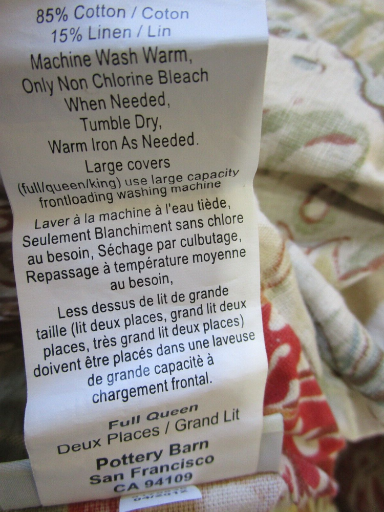 Buy it now or best offer Pottery Barn Full Queen Duvet Cover 85% cotton 15% Linen Preowned but in good condition~ no known spots/holes/tears Will ship within 24 hours of payment
