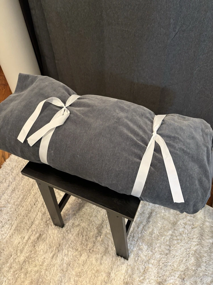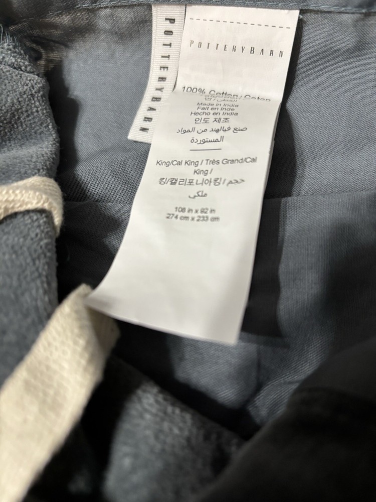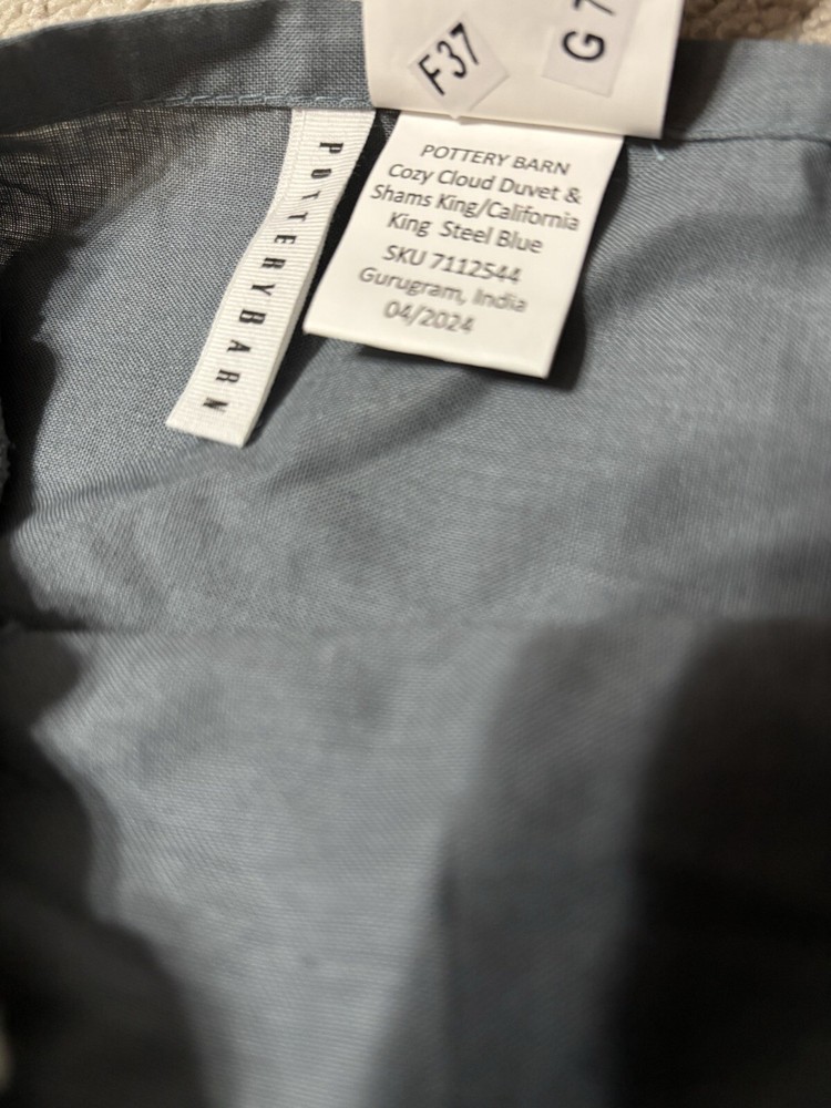 Pottery Barn Cozy Cloud Duvet - King, Steel Blue Color Color: Steel blue Size: King/Cal. King Duvet: 92" l x 108" w Material: Made from 100% Cotton Yarn Dyed Chenille; reverses to 100% cotton sheeting. Pre-owned with several imperfections on one side as seen in photos but otherwise still in good condition.