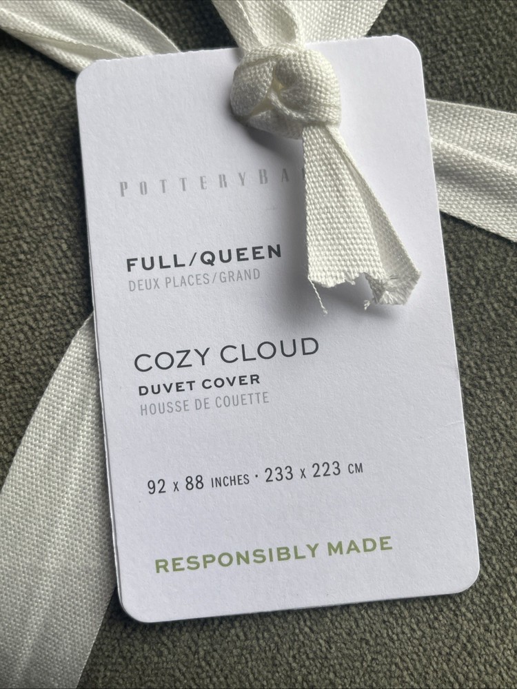 Pottery Barn Cozy Cloud Full/Queen F/Q Duvet - Loden - NEW Condition: New with tags Size: Full / Queen Color: Loden (Green) 13.99 shipping to the U.S. Thank you for your interest!