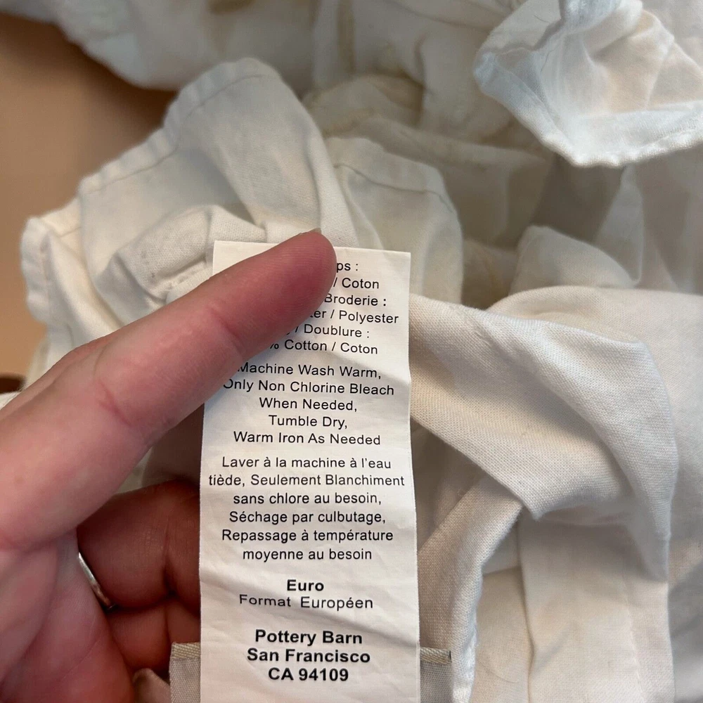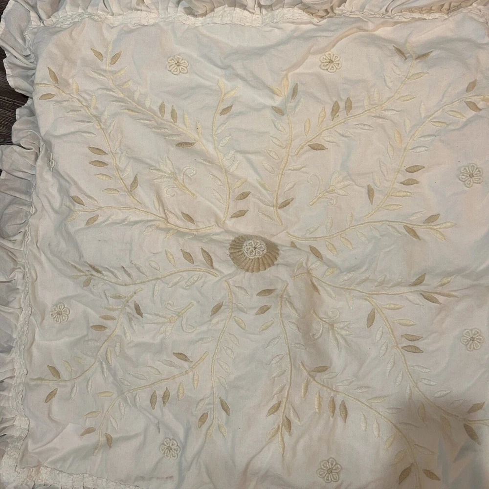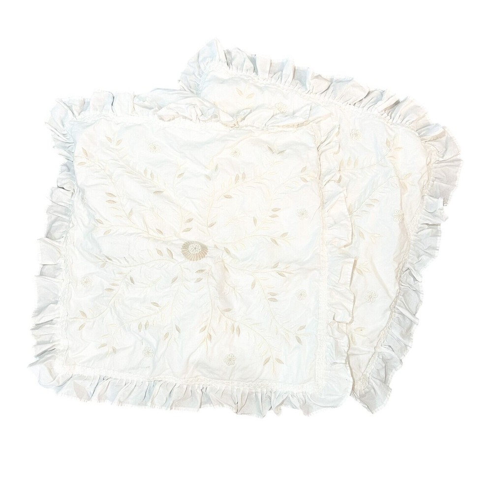 <![CDATA[<div>Pottery Barn Cream 2 pc Set Pair Euro Shams Cottagecore Farm House Ruffle Boho This is a gorgeous 2 pc set of cream euro sized shams with embroidery, and a highly ruffled trim edge. The color is a white / cream style. There are no flaws or marks! Thanks for checking out Lydia’s Pinecones! We’ve been in business for over 5 years, and sold 11k items. All items are in very good condition, and the lighting in the pictures shows the colors as accurately as possible unless otherwise noted.