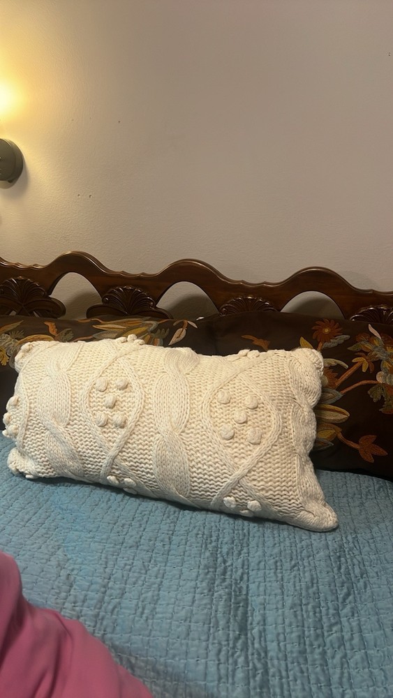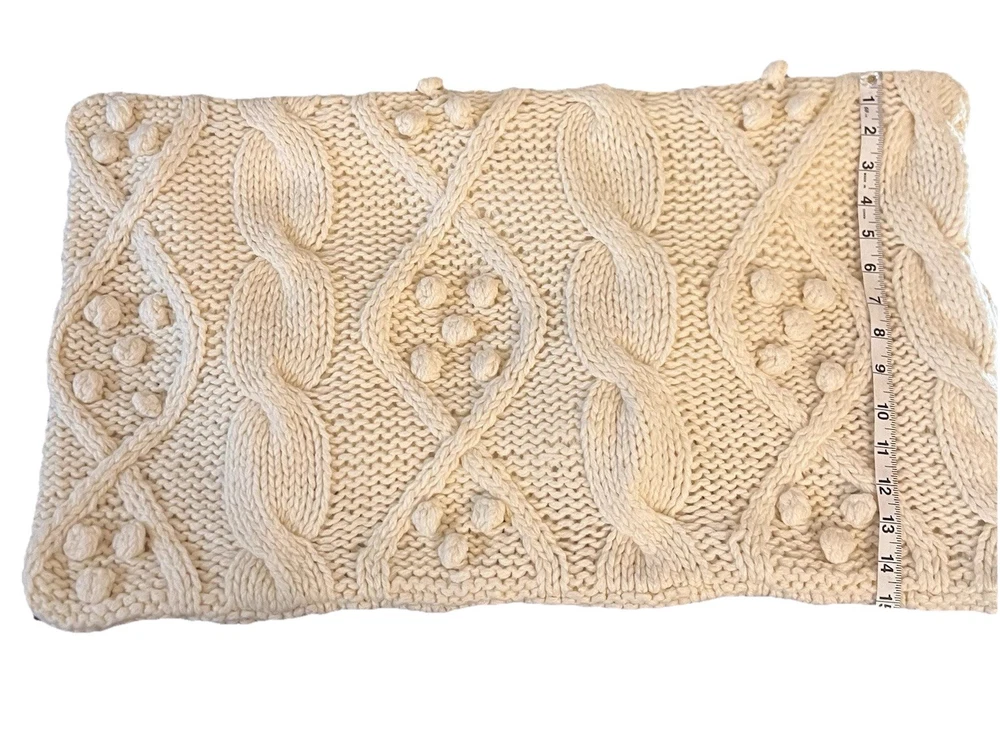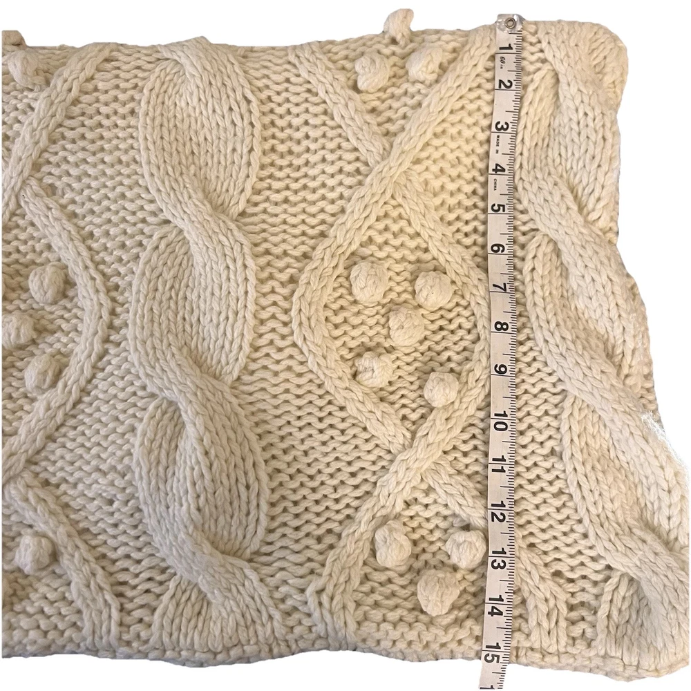Pottery Barn Cream Sweater Pillow Shams Set, Zipper closure, soft. 2 Shams 16x26 inches In good used condition. Zippers working properly. Does not come with inserts. Brown embroidered shams in second picture also for sale Shell is acrylic 70% wool 30% Lining 100% cotton Cozy and warm can be used on bed or couch. Versatile , neutral color. Let me know if you have any questions.