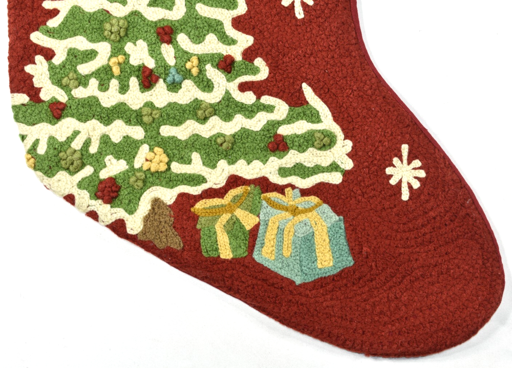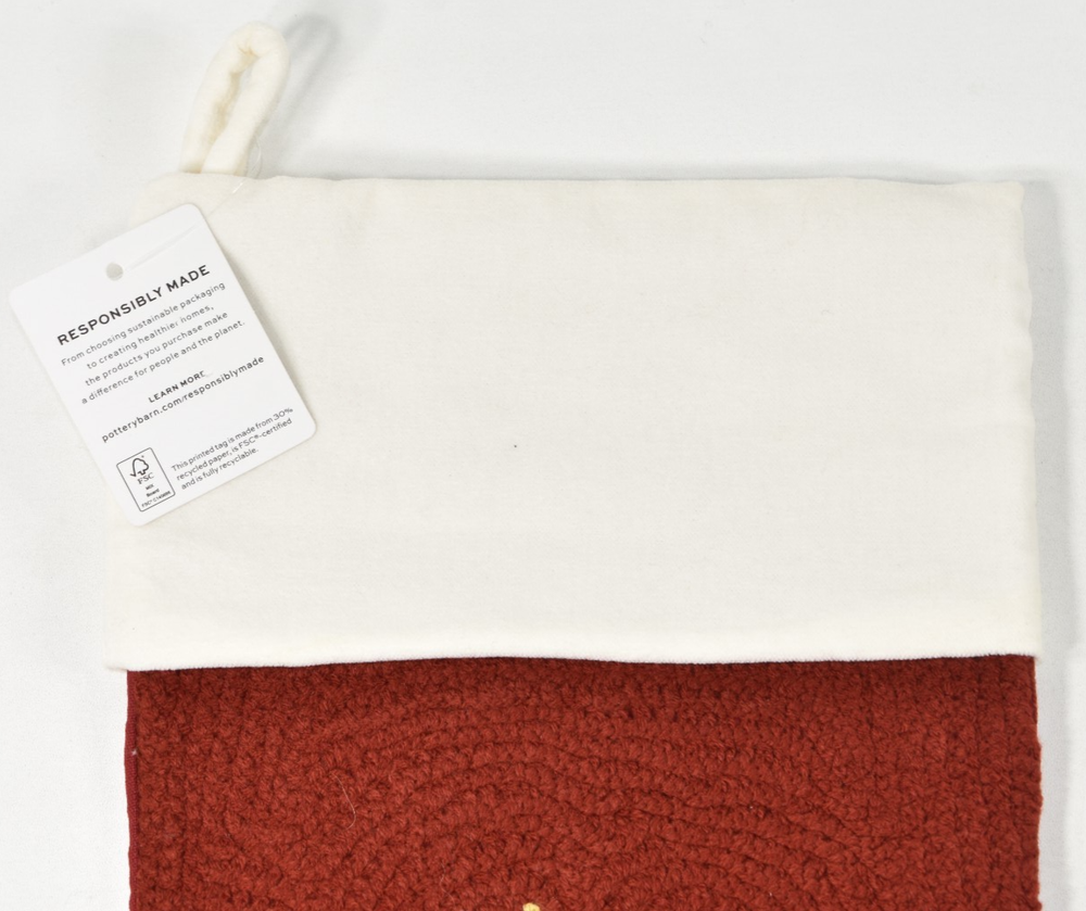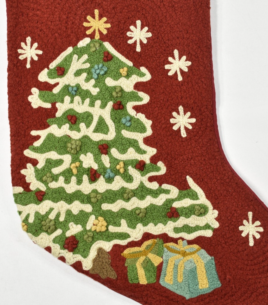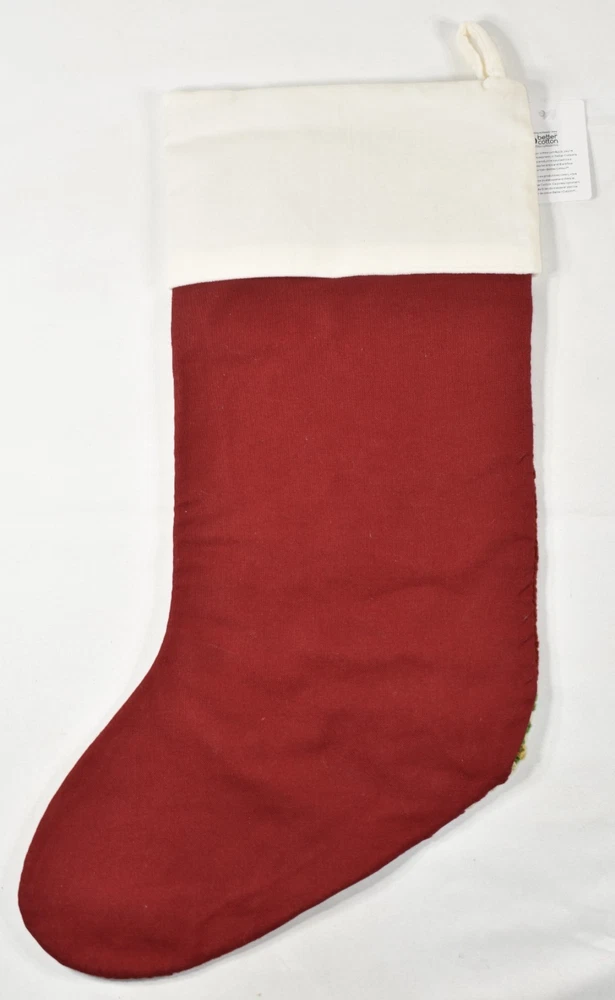 Pottery Barn Crewel Embroidered Christmas Tree Red Stocking NEW No Monogram NO MONOGRAM! Condition: New with tag. Outside is made of 100% cotton. Cuff is made of 100% cotton velvet. Size: Approximately 19.5" x 12.25" (according to label sewn inside the stocking) Hanging Loop - Approximately 2.5" long Imported. Buyer pays $6.90 shipping. Thanks so much!