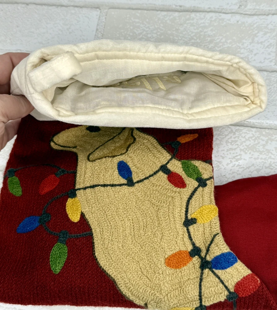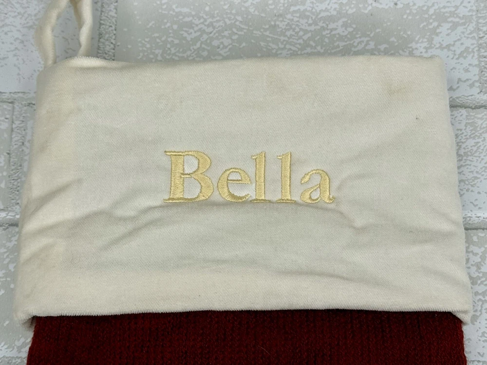 This stocking is in good used condition. There are tears or rip in the seams or fabric. It is monogrammed with the name BELLA....