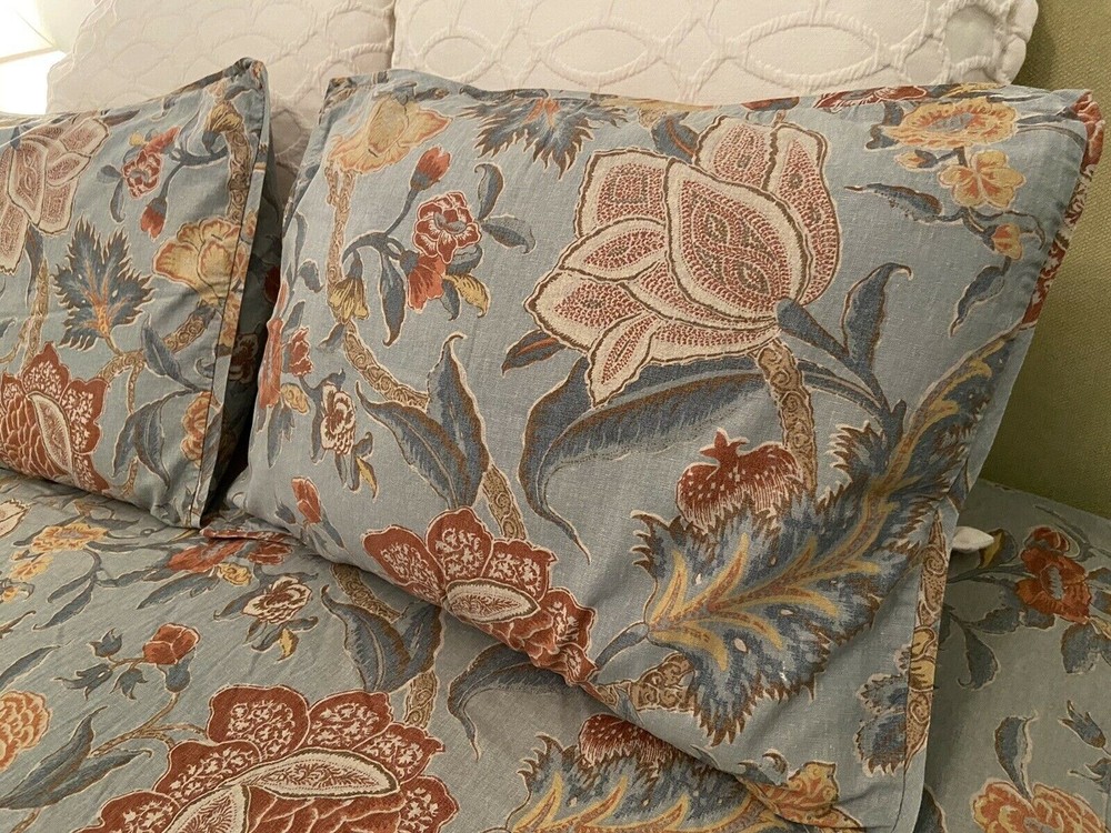 Absolutely love this duvet cover! The vibrant blue floral pattern is stunning, and the hidden buttons + ties keep everything secure. Used but in perfect condition—looks brand new. Feels luxurious, just like Pottery Barn quality should be. The Euro shams complete the set beautifully. Highly recommend!