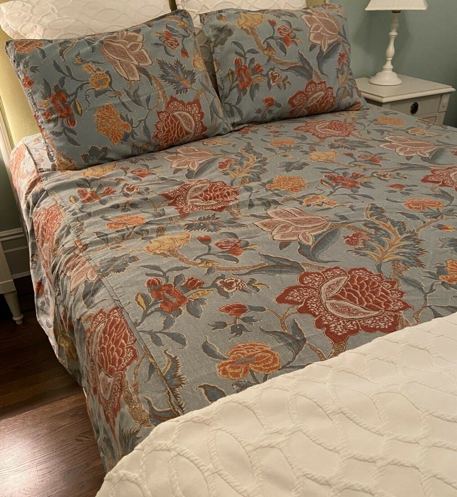 POTTERY BARN CYNTHIA DUVET Beautiful CYNTHIA Palampore duvet. Duvet cover has a hidden button closure and interior ties to keep the duvet in place. Imported. Auction is for QUEEN duvet with TWO EURO SHAMS Item is USED! Item is in EXCELLENT condition. (Condition ranges I use: NEW, EXCELLENT, GREAT, GOOD, POOR) A d d i T i O N a l P h o T O s A v a i L a B Le U p O n R e Q u e S T PURCHASED DIRECTLY FROM POTTERY BARN. AUTHENTIC.