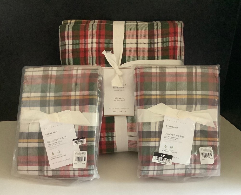 Pottery Barn DENVER PLAID FULL / QUEEN DUVET COVER, 2 STANDARD SHAMS New with Tags Our designers found the perfect contrasting shades and widths to create this bedding, which is made with cotton and linen for a smooth, breathable texture that is soft and cozy to the touch. Made of 53% cotton and 47% linen. Yarn dyed for rich and lasting color that wears well over time. Duvet cover and sham reverse to self. Machine wash Imported. CARE AND MAINTENANCE: Machine wash in warm water on gentle cycle. Use only non-chlorine bleach, if needed. Tumble dry on low heat; remove promptly. Warm iron as needed. Fast shipping within 24 hours. Items come from a pet-free, smoke-free home. Thank you for looking. Feedback from buyers: * "This is, by far, the best shopping experience I’ve had ever. Period. This seller went above and beyond to make sure she did every single thing possible to get me the sheet set I’d ordered. And then she followed up with a generous thank you. I’ve never had so much fun buying something!" * "The seller could not have made it any easier to make a purchase. The communication concerning the status of shipping and any follow up questions was quickly answered. This is what real customer service feels like. I would purchase from this seller again!" * "So so sorry for the belated feedback. This was the best seller I have ever encountered on eBay or anywhere for that matter, so kind, thoughtful, personable, accommodating. Went out of her way to get me the items even faster than ASAP w/out upcharge. Everything was pristine, beyond perfect, impeccably wrapped, I am so grateful and was thrilled to have the items needed for my first post COVID dinner party. She is a model for all sellers, her customer service is beyond compare, incredible actually."