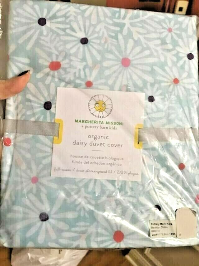 POTTERY BARN DAISY DUVET Dreamy daisies accent our comfy duvet cover for a playful take on traditional design. Whimsically imagined, our exclusive collaboration with fashion designer and mom, Margherita Missoni combines bright colors, bold patterns and unique accents to create a collection of bedding and decor that celebrates the spirit of childhood. Imported. Auction is for QUEEN duvet with TWO STANDARD SHAMS Item is BRAND NEW in ORIGINAL PACKAGING! A d d i T i O N a l P h o T O s A v a i L a B Le U p O n R e Q u e S T PURCHASED DIRECTLY FROM POTTERY BARN KIDS. AUTHENTIC.