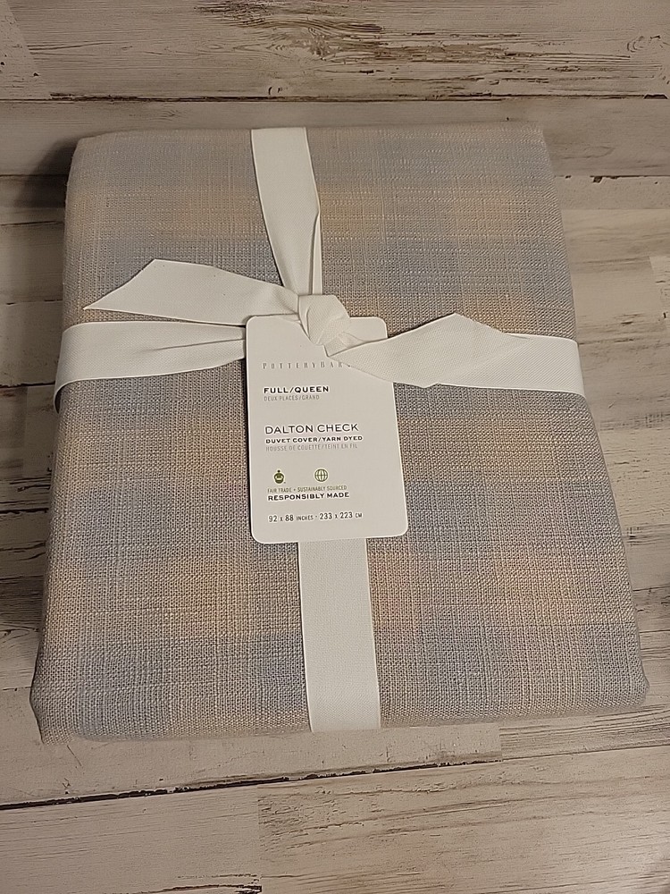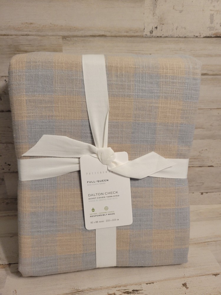The Pottery Barn Dalton Check Full/Queen Duvet Linen Cotton in Blue/Flax is a stylish and cozy addition to any bedroom. Made from a blend of linen and cotton, this duvet cover features a rectangular shape and a checked pattern in shades of blue and beige. With a cottage style and nature theme, this duvet cover brings a touch of warmth and charm to your bedroom decor. Easy to care for with machine wash and tumble dry instructions, this duvet cover from Pottery Barn is sure to add a touch of elegance to your bedroom.