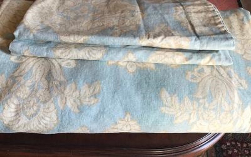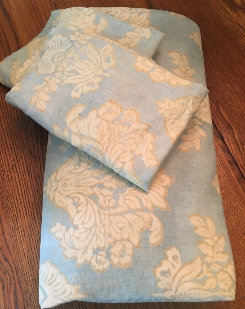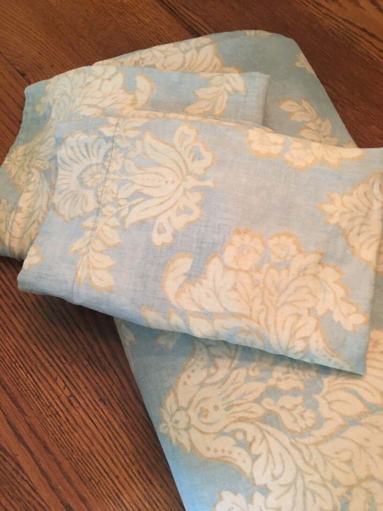 POTTERY BARN DAMASK DUVET Beautiful DAMASK duvet. Duvet cover has a hidden button closure and interior ties to keep the duvet in place. Imported. Full/Queen: 92 x 88" Auction is for QUEEN duvet with TWO STANDARD SHAMS. BEAUTIFUL DUVET, material is thick and heavy. Great quality. Item is USED! Item is in EXCELLENT condition. (Condition ranges I use: NEW, EXCELLENT, GREAT, GOOD, POOR) A d d i T i O N a l P h o T O s A v a i L a B Le U p O n R e Q u e S T PURCHASED DIRECTLY FROM POTTERY BARN. AUTHENTIC.