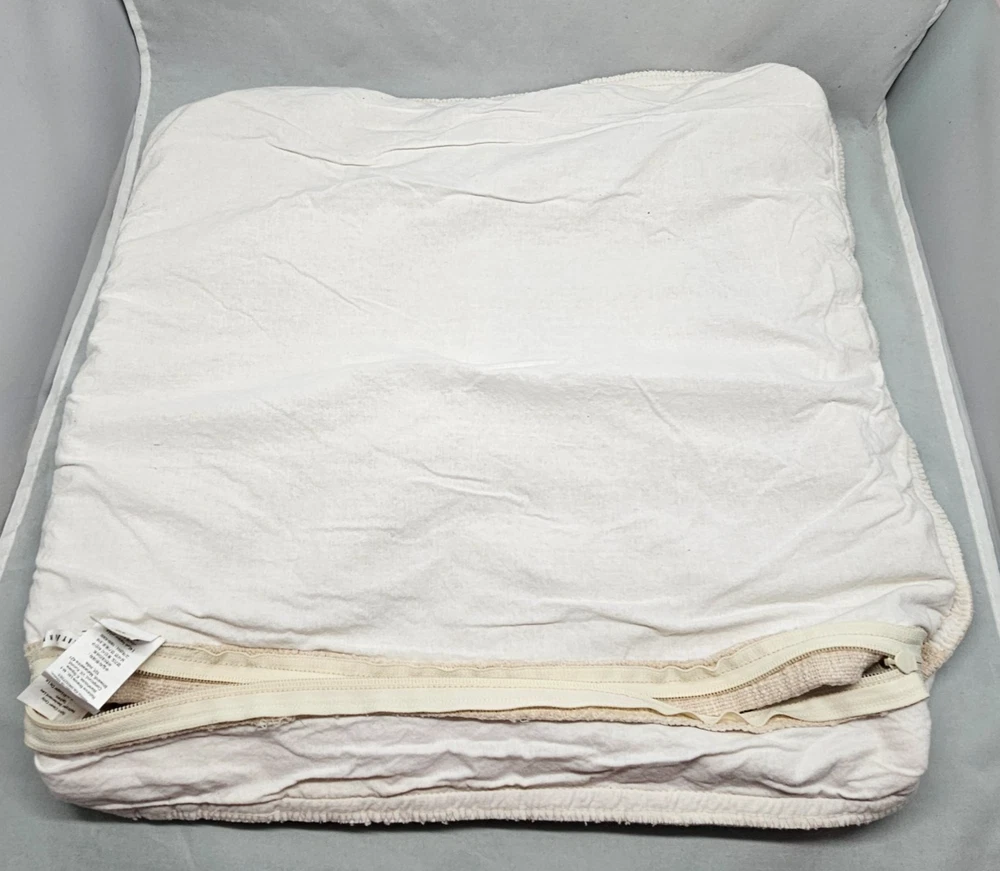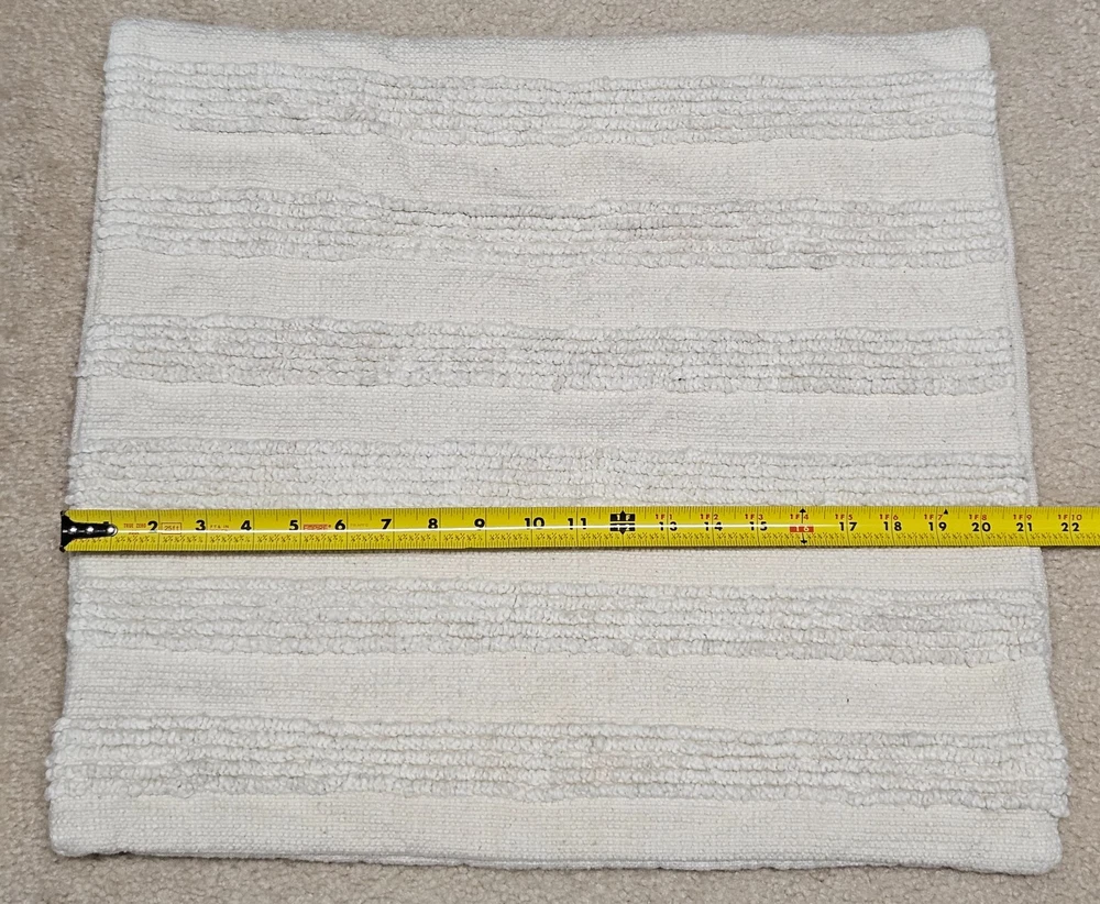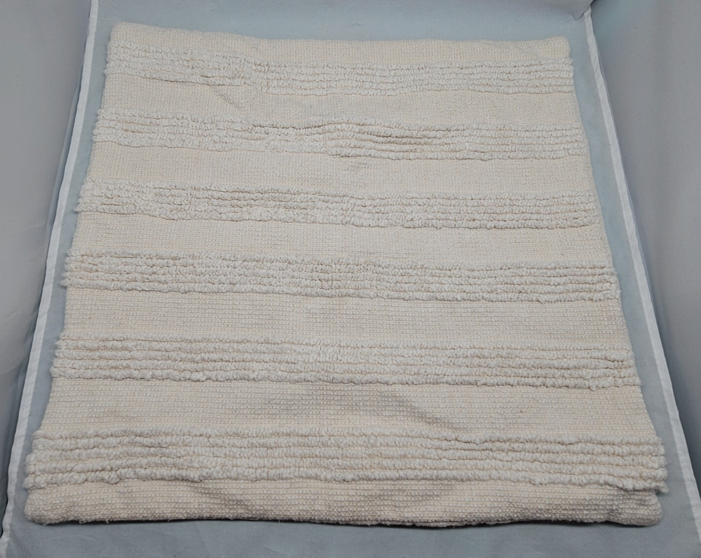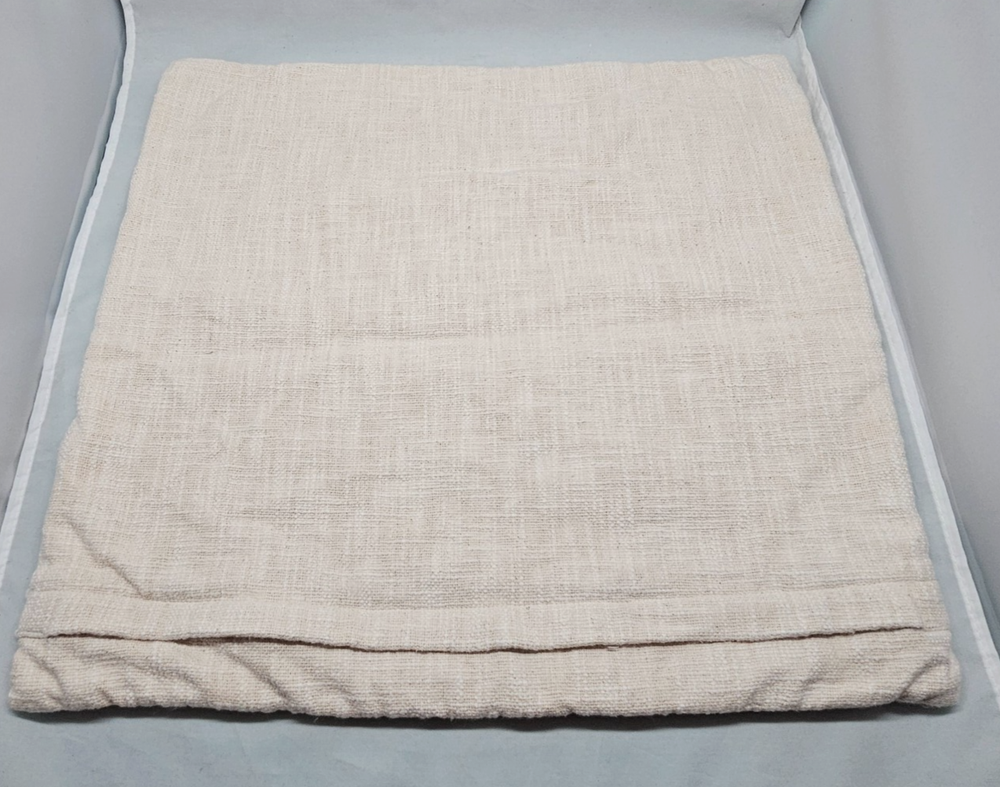 This pillow cover was washed by accident and it did shrink. Original size 22x22", size now: 19x21". Pilling and 'fuzziness" from use and washing on textured side. Preloved condition with light signs of wear. Please see photos for conditions. Items are inspected and cleaned. We do our best to point out flaws. Please look at all photos since they are part of description. Please note: Measurements are approximations. Actual color of the item may vary from photos due to lighting and color variance . Items ship from pet and smoke free home. We offer a combined shipping discount. 30 Day Free Return for unused items. If you are not happy with your purchase, contact me first. For further sustainability, I reuse shipping material as often as I can.
