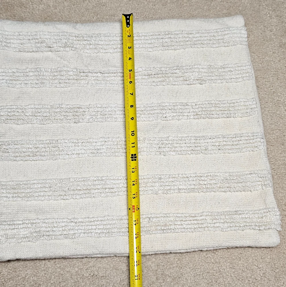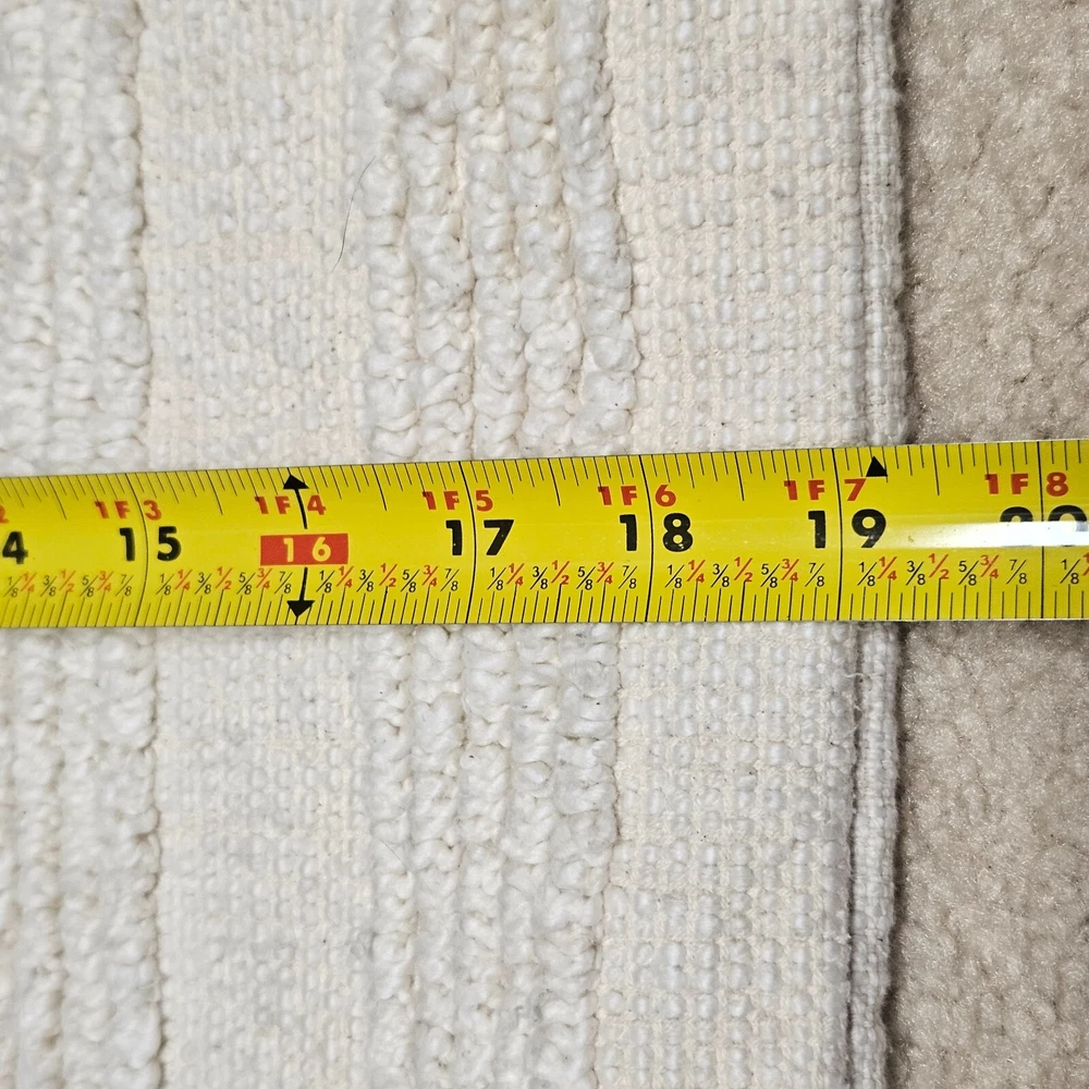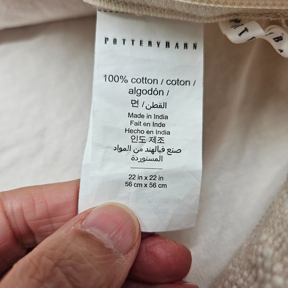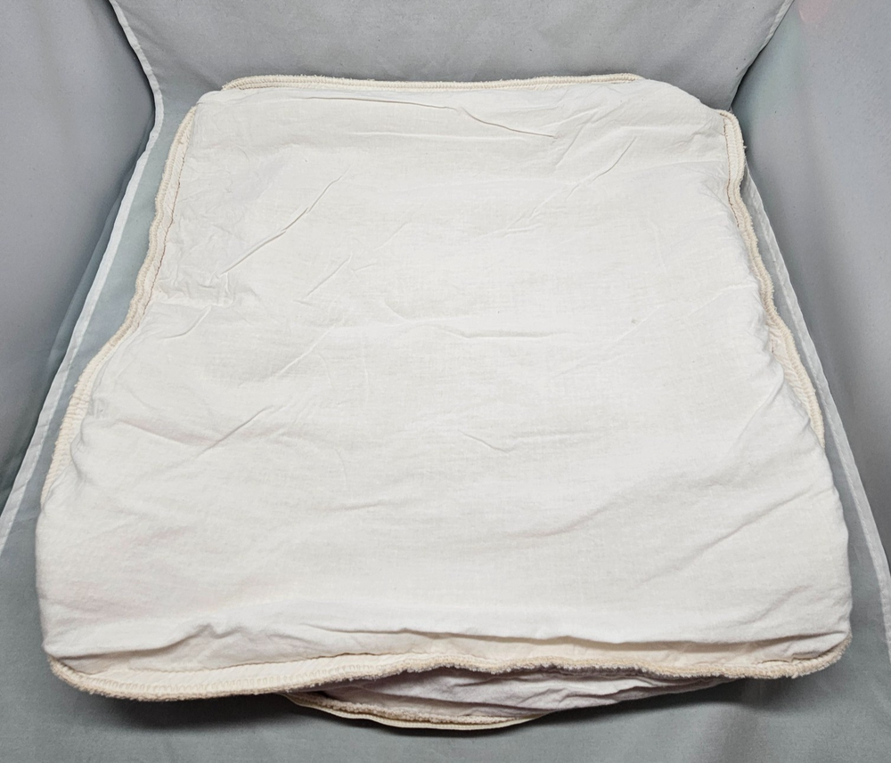 This pillow cover was washed by accident and it did shrink. Original size 22x22", size now: 19x21". Pilling and 'fuzziness" from use and washing on textured side. Preloved condition with light signs of wear. Please see photos for conditions. Items are inspected and cleaned. We do our best to point out flaws. Please look at all photos since they are part of description. Please note: Measurements are approximations. Actual color of the item may vary from photos due to lighting and color variance . Items ship from pet and smoke free home. We offer a combined shipping discount. 30 Day Free Return for unused items. If you are not happy with your purchase, contact me first. For further sustainability, I reuse shipping material as often as I can.