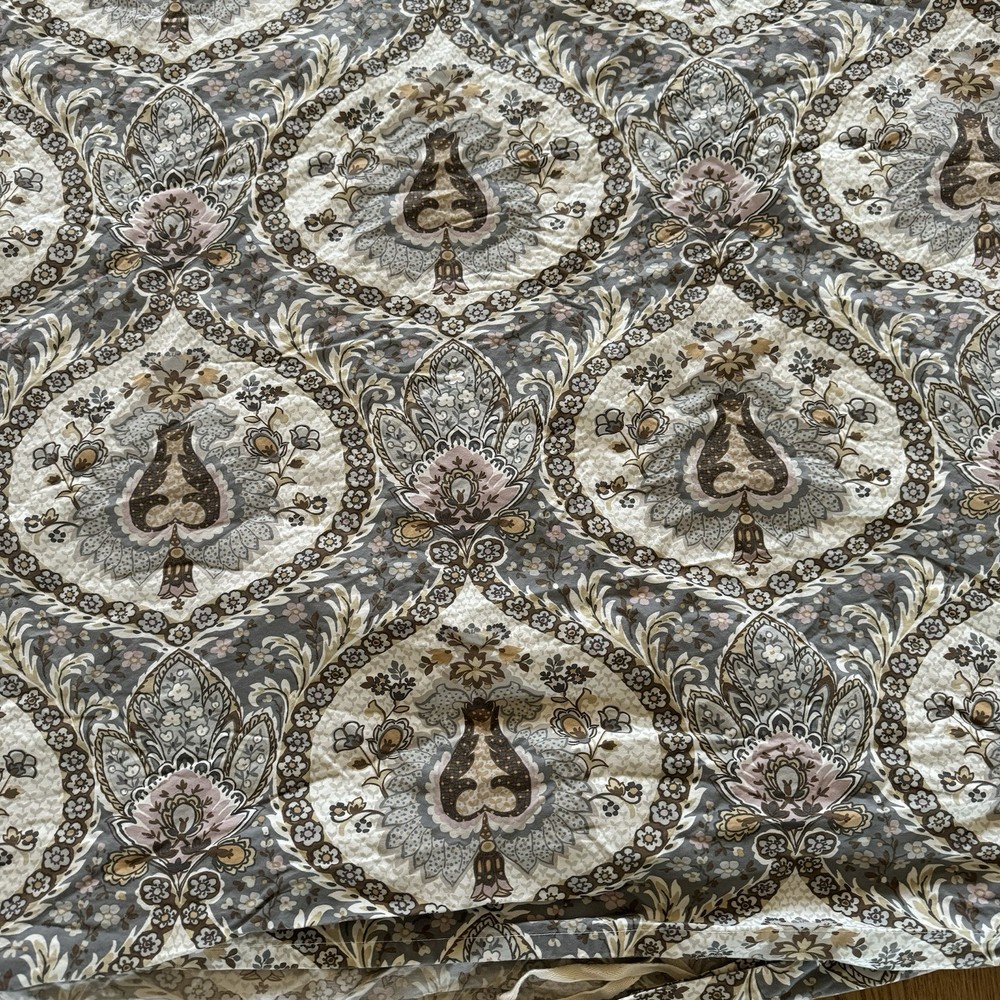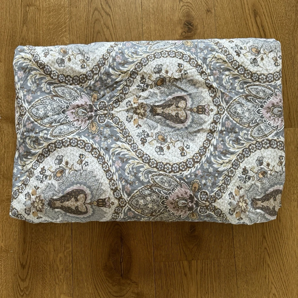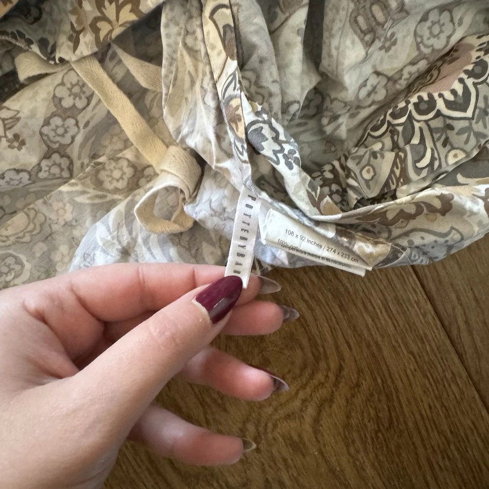 Adorn your bedroom with the elegance of the Pottery Barn Darcy Floral Medallion Duvet Cover, designed to bring a touch of sophistication to your California King bed. Featuring a vibrant multicolor floral pattern, this rectangular duvet cover is a masterpiece of style and comfort, crafted from luxurious 100% cotton material that promises to provide a soft and inviting feel. The duvet cover is easy to care for and maintain its beauty, thanks to its machine-washable nature. It's a perfect blend of functionality and fashion, ensuring that your bedding is always fresh and crisp. The product number for reference is 4169230311F0JG4, and it does not offer personalization. Enhance your sleeping experience with this exquisite addition to your bedroom decor. it’s in very clean condition. Has all the buttons look at pictures please as it is part of the description thank you.