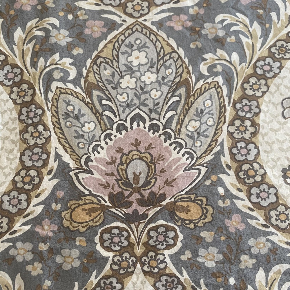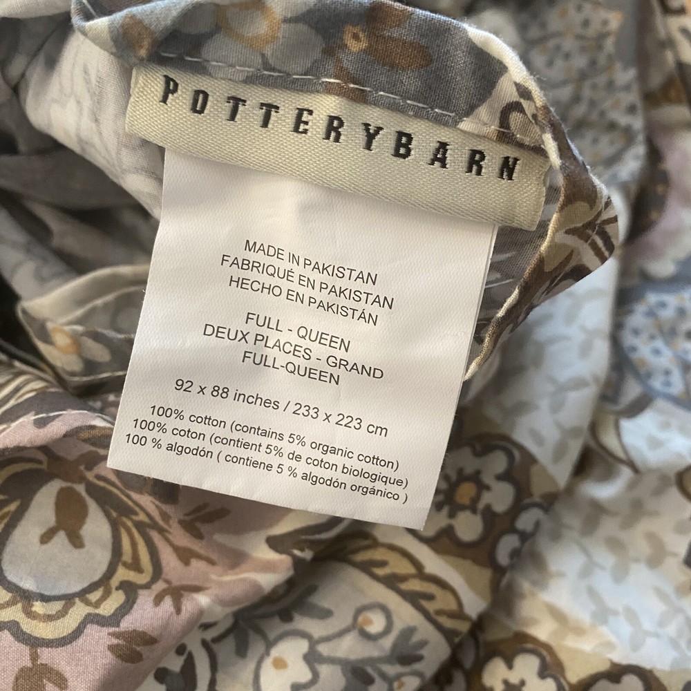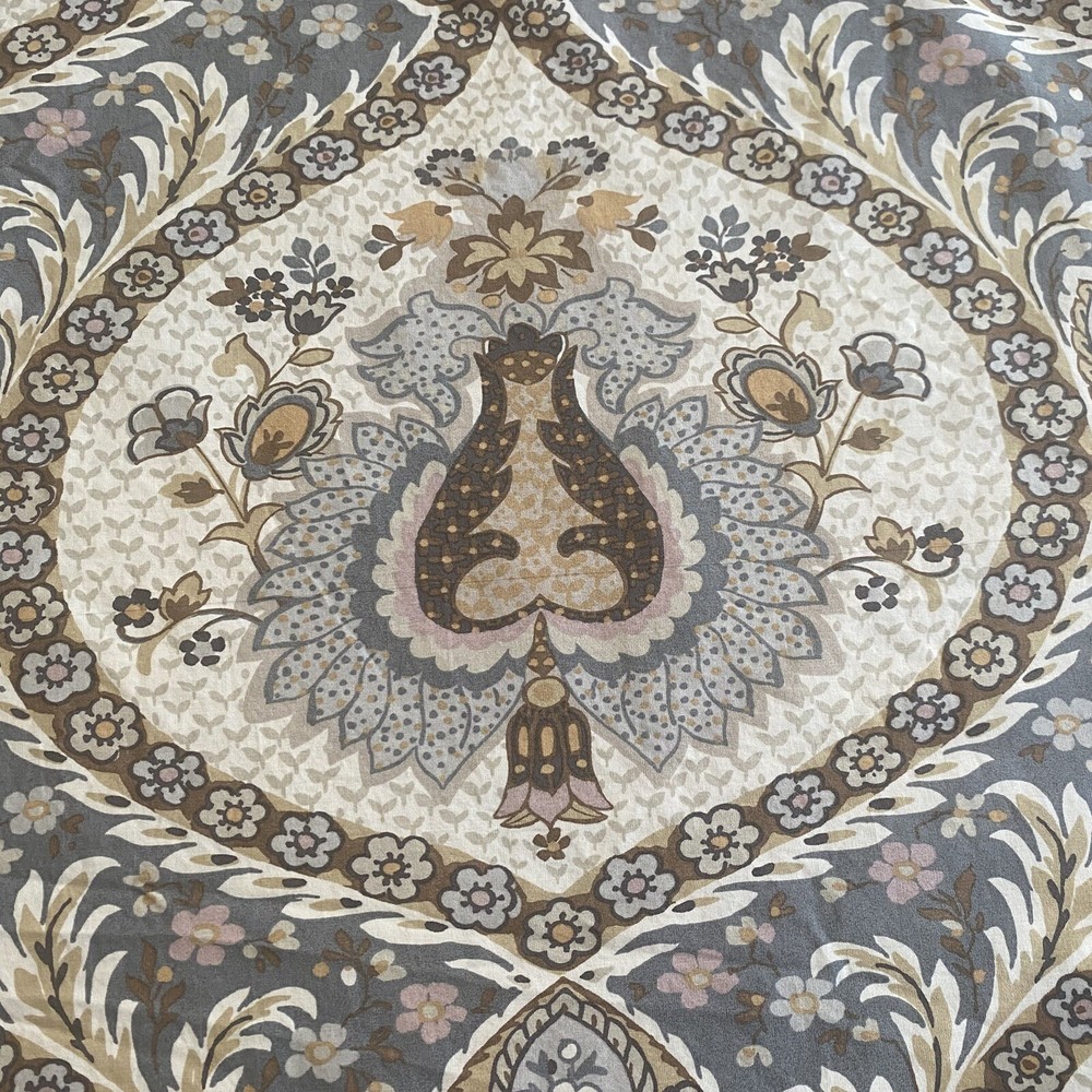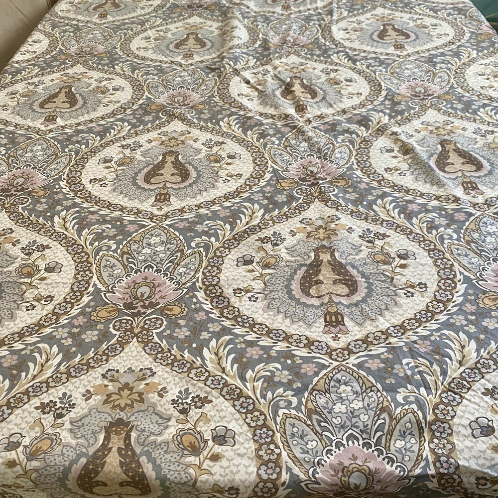 Clean and ready to use. 100% cotton made in Pakistan. Light fading as normal with washing and wear on cotton. Fabric is still crisp and no stains or tears were found.