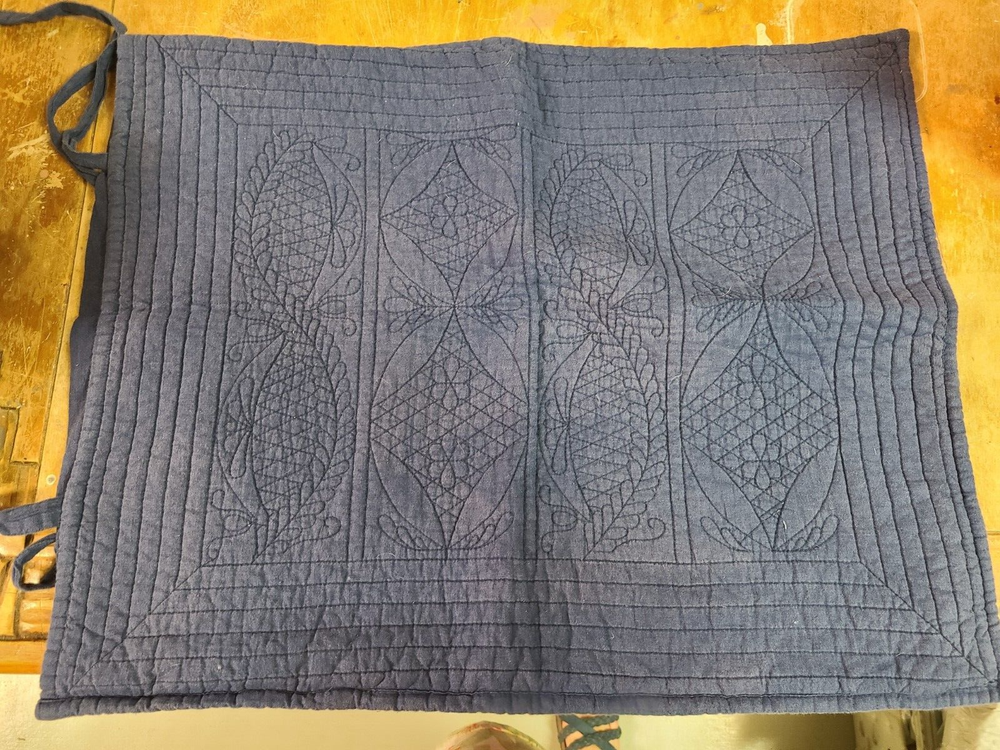 Beautiful! In very good condition, 100% cotton; light blue on one side, darker blue on the other; with oval patterned matelasse design; Will combine shipping for multiple items. Thanks for looking. All items are sold "AS IS" , they are pre-owned unless otherwise stated and will need to be washed ; if you have any questions about the item please ask before purchasing; No refund will be given on a missing part, wrong colors, wrong pattern, dirt (I live in the desert so it's inevitable – it washes right out), size, grease pencil marks or tag holes. I try to describe item the best that I can and supply numerous photos -- I will be more than happy to take different photos, measurements, etc. if needed for you. Thanks for looking!