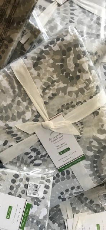 POTTERY BARN DARYA DUVET At first sight, the beautiful Darya Painterly Paisley Organic Cotton Duvet Cover & Shams are a vivid display of paisley. Look closer, and you’ll see swirling, brushstroke-inspired dots come together to bring the pattern to life. It’s printed on organic cotton that’s better for the environment and better for your home. Made of 100% organic cotton. Organic cotton is grown without the use of toxic and persistent pesticides and synthetic fertilizers. Duvet features a zipper closure and interior ties to help keep insert (sold separately) in place; sham features an envelope closure. 350-thread count. Duvet and sham reverses to same. Machine wash. Imported. Auction is for QUEEN duvet and TWO STANDARD Shams. Color available is GRAY Item is BRAND NEW! A d d i T i O N a l P h o T O s A v a i L a B Le U p O n R e Q u e S T PURCHASED DIRECTLY FROM POTTERY BARN. AUTHENTIC.