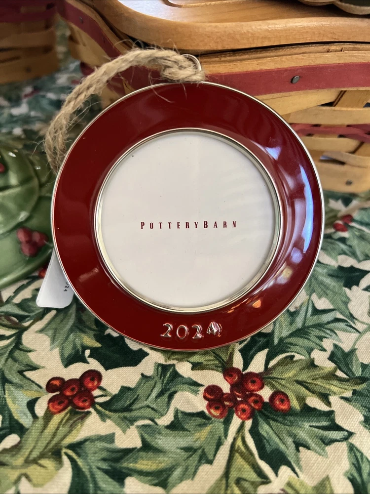 Celebrate Christmas with this beautiful Pottery Barn dated 2024 red round Enamel Frame Ornament. The frame is perfect for hanging on a Christmas tree or in any special place. New with tags and shipped within 24 hours of payment from a smoke free environment. Thank you for shopping at handmadeMaria! Only the frame ornament is including in the purchase.