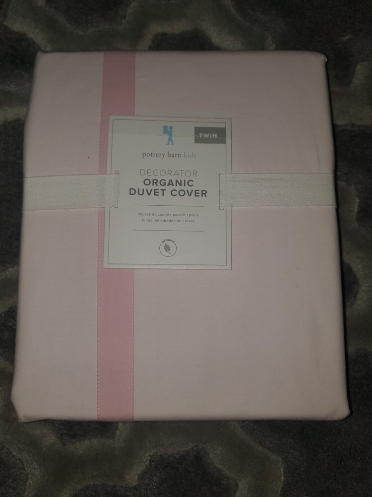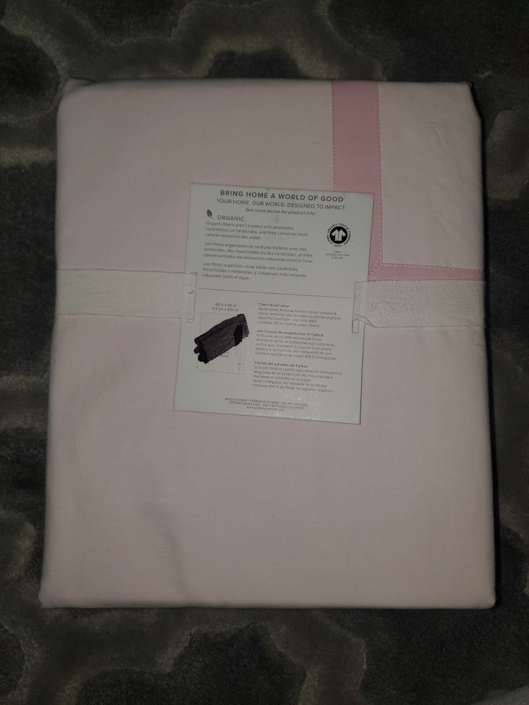 Add a touch of elegance to your bedroom with this beautiful Pottery Barn organic duvet cover. The light pink color is perfect for creating a calming and peaceful atmosphere. Made for twin size beds, this duvet cover measures 68 inches in length and 86 inches in width, providing a comfortable and snug fit. I have 100 percent positive feedback so you can buy with confidence. Please let me know if you have any questions. Thanks. Ben