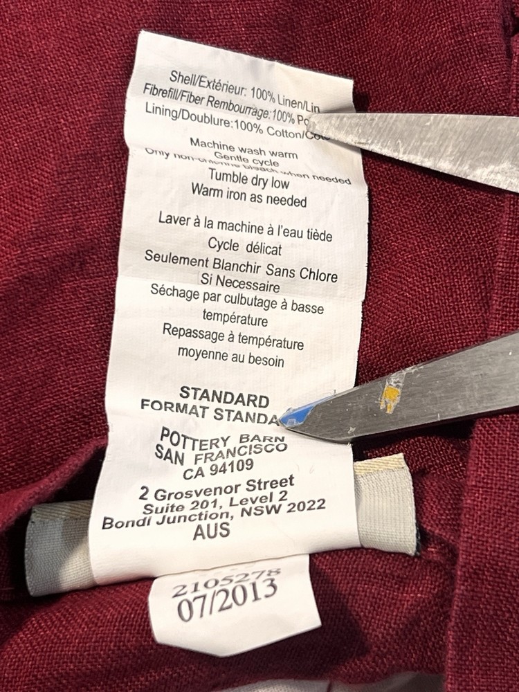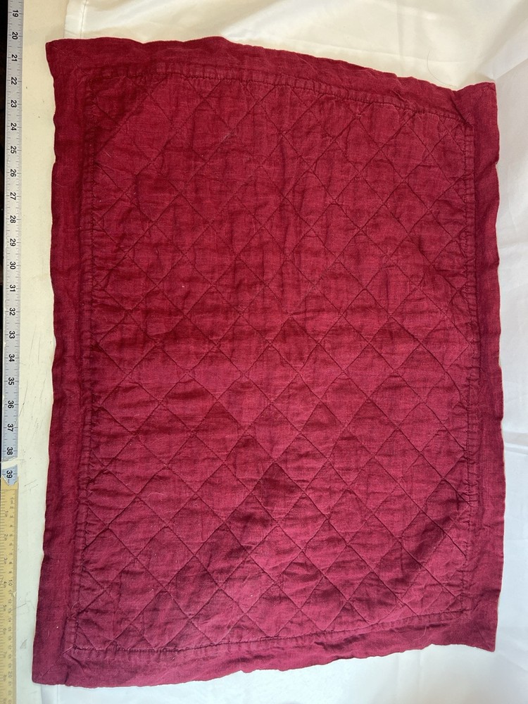 Pottery Barn Deep Red 100% Linen Quilted Flanged Pillow Shams Standard