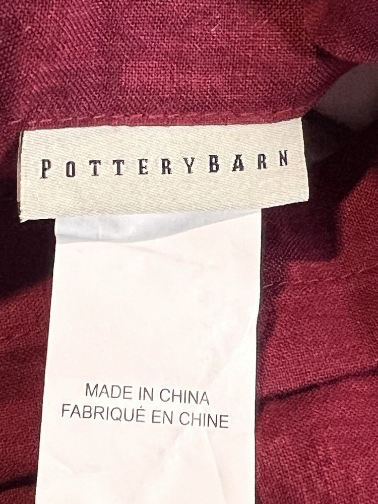 Pottery Barn Deep Red 100% Linen Quilted Flanged Pillow Shams Standard...