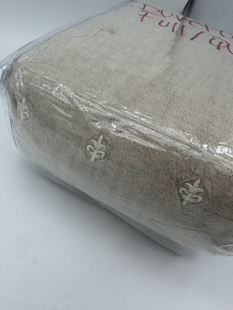 Full/queen duvet cover only Conceptualized and designed in collaboration with Deepika Padukone, this bedding mixes neutral hues with traditional patterns and embroidery for a modern take on heritage design. Stonewashed for a vintage feel, the linen-cotton blend epitomizes understated luxury and ultimate comfort. Material: Made from 52% linen and 48% cotton; reverses to 100% cotton. Reversible Design: Reverses to solid. Secure Design: Duvet features a hidden button closure with inner ties to keep insert in place. Sham has an envelope closure. Components: Duvet covers, shams, and inserts are sold separately. Shams are sold individually. Certification and Standards: OEKO-TEX® STANDARD 100 certified, tested for 1000+ harmful substances (14.HUS.42449 HOHENSTEIN HTTI). Place of Manufacture: Imported.