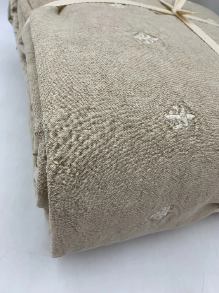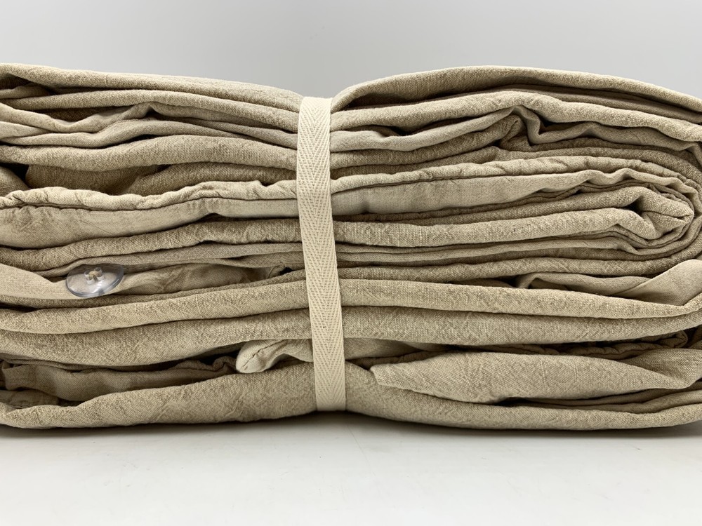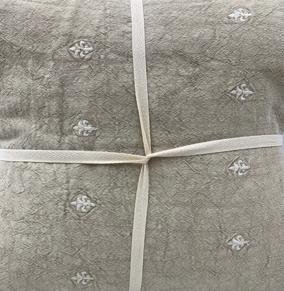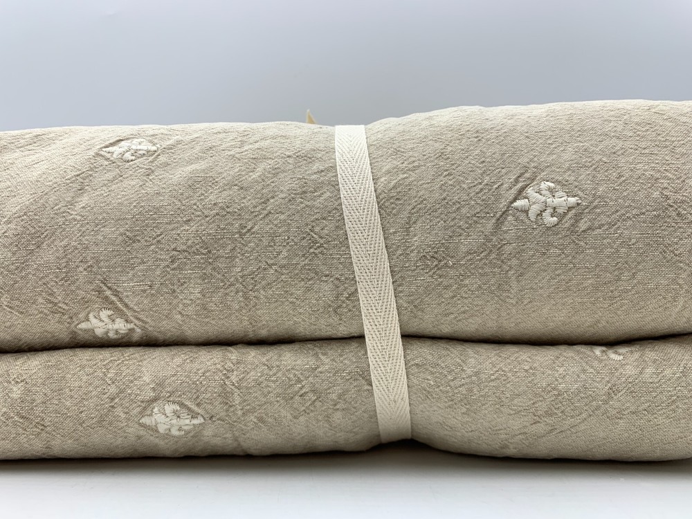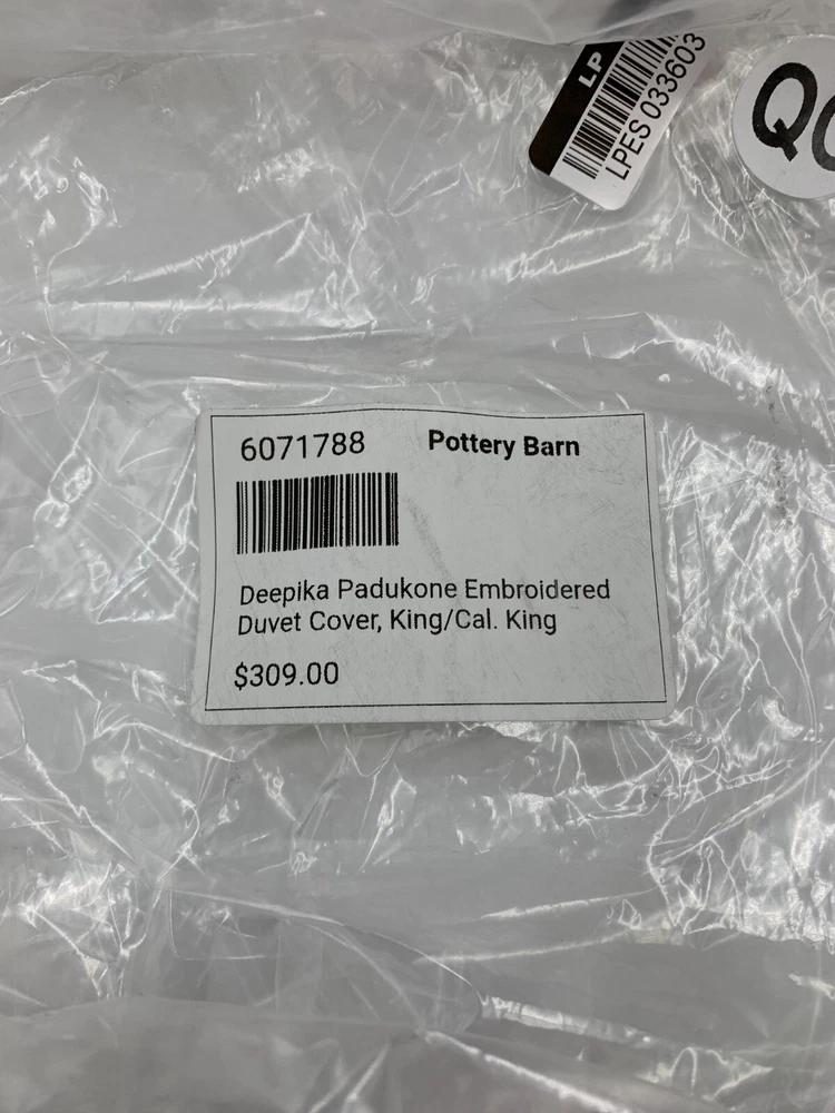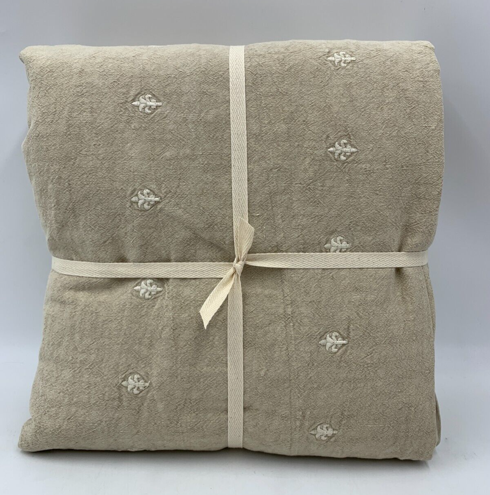 Pottery Barn Deepika Padukone Embroidered Duvet Cover Item is brand new Auction includes: 1 duvet cover PRODUCT DETAILS CONSTRUCTION: Made from 52% linen and 48% cotton; reverses to 100% cotton. Reverses to solid. Duvet features a hidden button closure with inner ties to keep insert in place. Sham has envelope closure. OEKO-TEX® STANDARD 100: tested for 1000+ harmful substances. 14.HUS.42449 HOHENSTEIN HTTI. Duvet Covers, shams and inserts are sold separately. Shams are sold individually. Machine wash. Imported. CARE: Linen will get softer with every wash. Machine wash in warm water; gentle cycle. Use only non-chlorine bleach, if needed. Line or tumble dry on a low temperature. Warm iron, as needed. DIMENSIONS: Full/Queen Duvet: 88" l x 92" w King/Cal. King Duvet : 92" l x 108" w Standard Shams: 20" h x 26" w Euro Shams: 26" sq King Shams: 20" h x 36" w