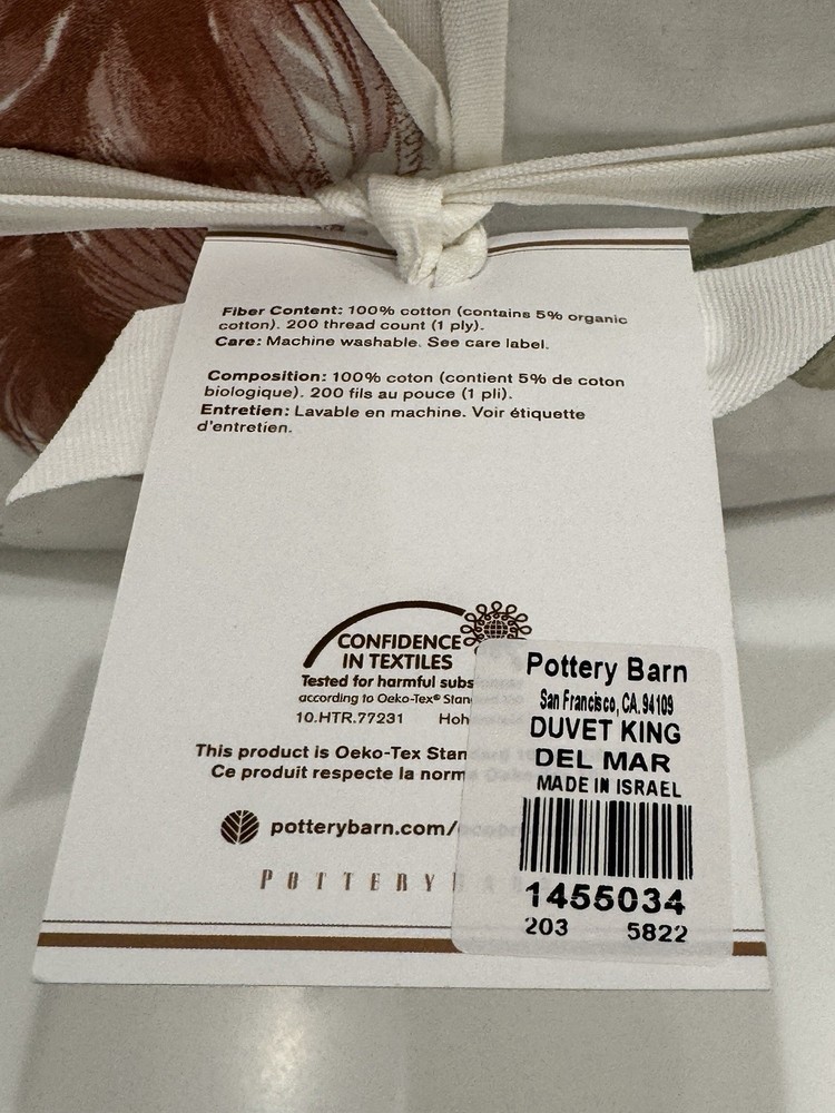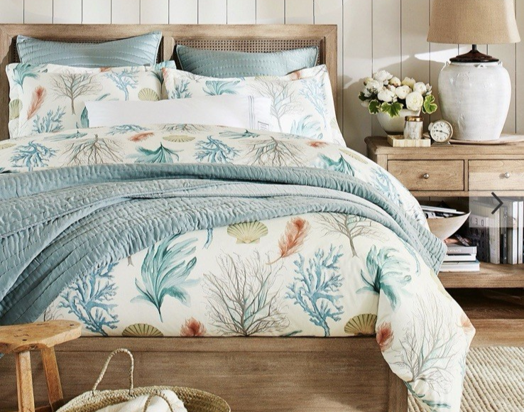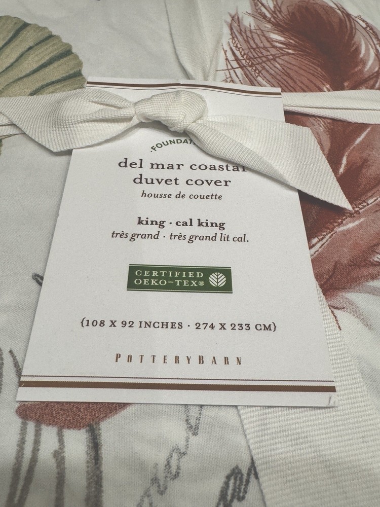 The Pottery Barn Del Mar Coastal King Duvet Cover is a beachy and stylish addition to any bedroom. Featuring a sea shell and coral pattern, this duvet cover brings a coastal feel to your space. Made from 100% cotton, it is soft and comfortable to the touch. The multicolor design adds a playful touch, while the button closure makes it easy to keep your duvet in place. Perfect for those who appreciate modern style and beach-inspired decor, this duvet cover is a must-have for your bedroom makeover. Woven of 100% cotton. 200-thread count. Duvet and sham reverses to an alternate colorway with the same pattern. Duvet cover has a hidden button closure and hidden interior ties; sham has an envelope closure. Duvet cover and insert sold separately. Shams sold individually. Imported. Care Machine wash in cold water; gentle cycle. Use only non-chlorine bleach when needed. Tumble dry on low heat; remove promptly. Warm iron as needed.